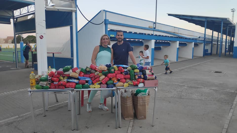 La gran cantidad de KILOS DE ALIMENTOS recaudados en el partido, se destinarán al reto solidario del ciclista Diego Ruiz Vega. El deportista se halla inmerso en una persistente tarea de recaudar productos de primera necesidad para los Bancos de Alimentos de Benacazón y Sanlúcar la Mayor, municipios colaboradores en el récord que el ciclista llevará a cabo el próximo 17 de Septiembre en la Cuesta de las Doblas: "DOBLE EVERESTING CHALLENGE"