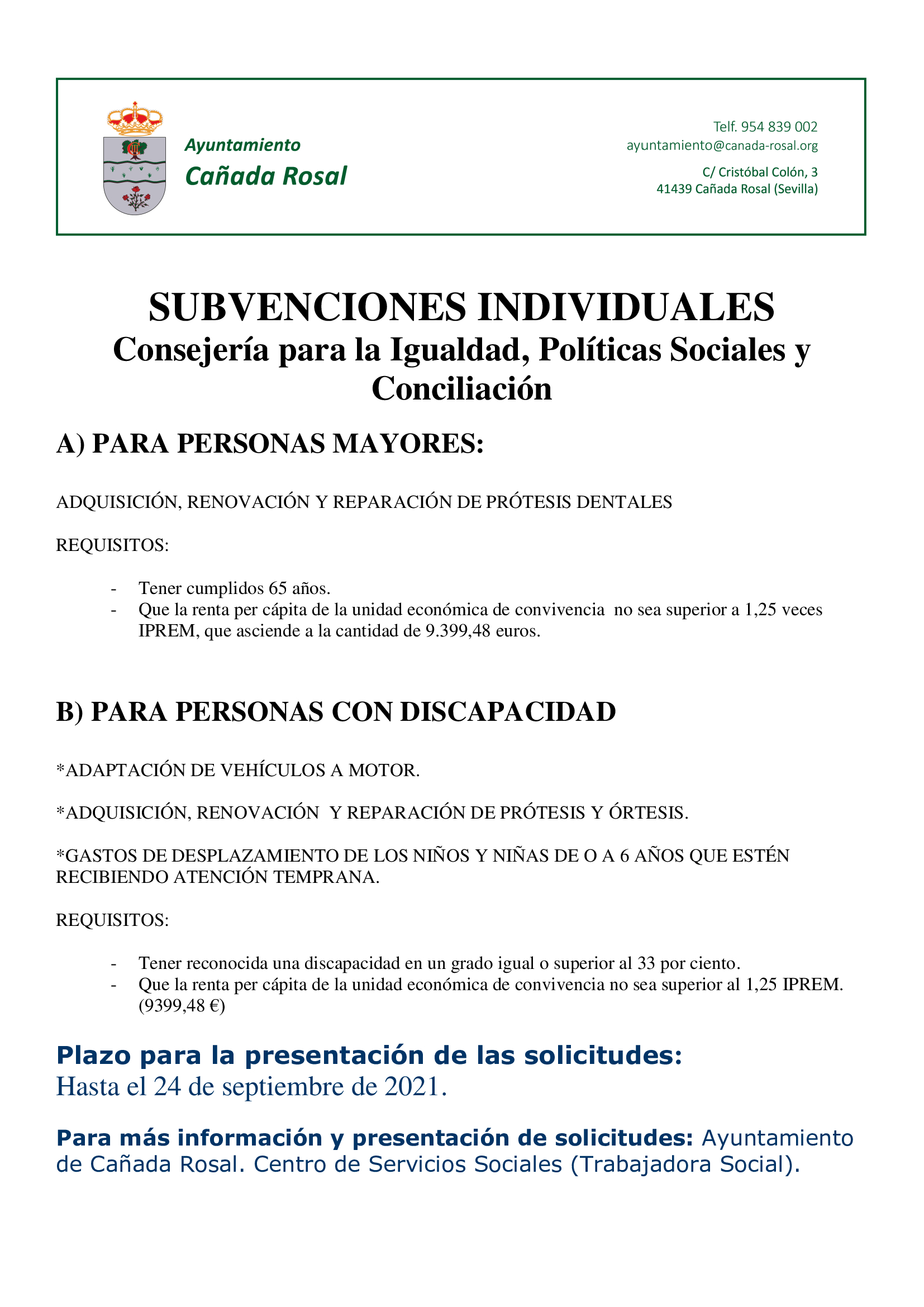 Imagen Ubicación Categoría noticia Bienestar social Mostrar en el carrusel de la sección No Fecha Vie, 10/09/2021 - 20:31 Más información http://www.canadarosal.es/es/actualidad/noticias/SUBVENCIONES-INDIVIDUALES-0000…