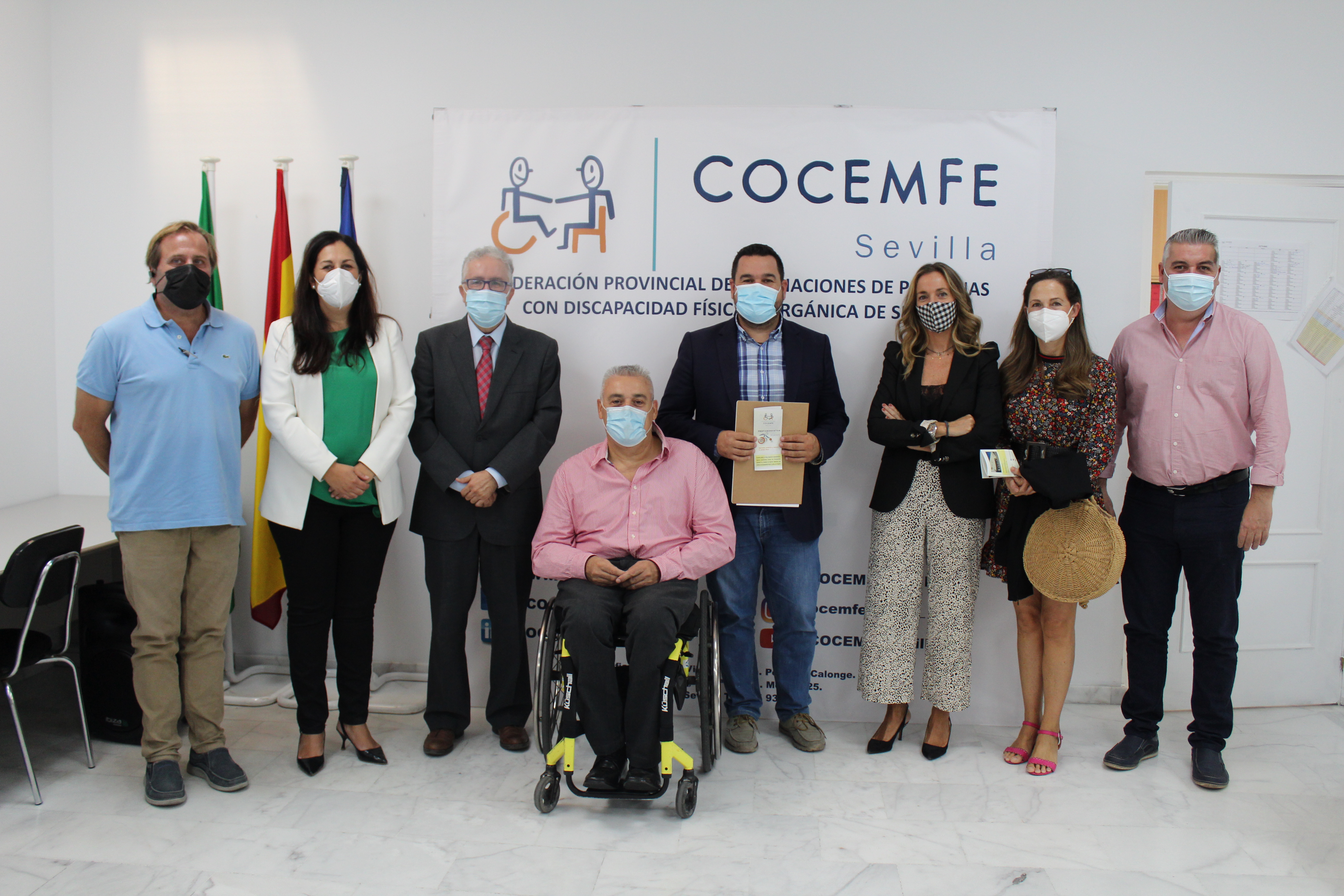 El presidente de COCEMFE Sevilla, Juan José Lara, y los alcaldes de ambas administraciones locales, Francisco Miguel Molina y Romualdo Garrido, han presentado este jueves esta nueva iniciativa en la sede de la entidad social. Asimismo, han estado presentes la delegada de Bienestar