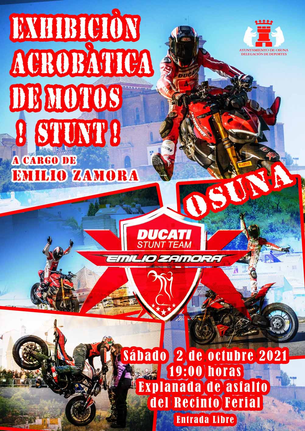 Benito Eslava ha indicado que "además de la colaboración en la cesión de las instalaciones y en la organización de la prueba, el Ayuntamiento también ha organizado para el sábado, a las 19.00 horas, en el recinto ferial, una exhibición de Emilio Zamora, abierta al público y con la que disfrutar de un artistas de las filigranas con las motos, todo un espectáculo y exhibición de vueling que nunca se ha visto en Osuna y que no dejará indiferente a nadie".