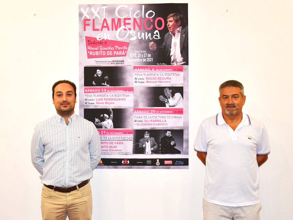 El salón de actos de la Casa de la Cultura ha acogido la presentación del Ciclo Flamenco de Osuna que, organizado por la Peña Cultural Flamenca La Siguiriya, cuenta con la colaboración del Ayuntamiento de Osuna y se celebrará durante los cuatro sábados del próximo mes de noviembre.