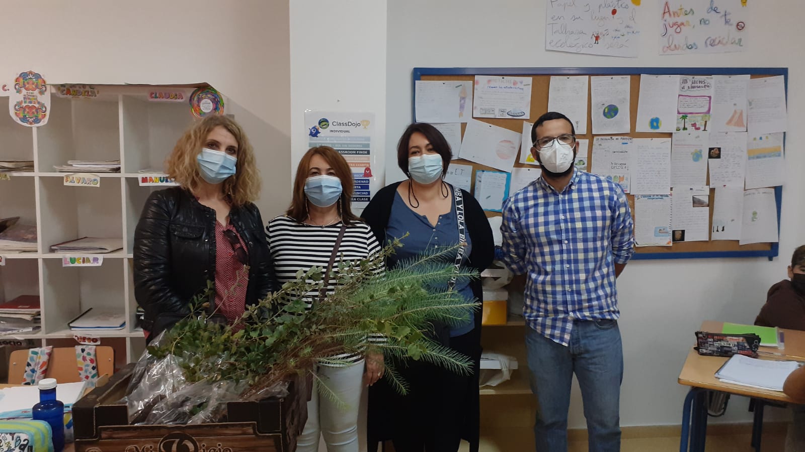El Ayuntamiento de Benacazón informa que en la mañana del pasado viernes 29 de Octubre de 2021 se repartieron arbolitos, de las variedades pinos y alcornoques, entre los alumnos del CEIP Ntra. Sra. de las Nieves y CEIP Talhara, así como a la Asociación local para la Integración (ALPI), por parte de la Delegada municipal de Medio Ambiente, Mercedes Espinosa, acompañada por otros concejales del Equipo de Gobierno.