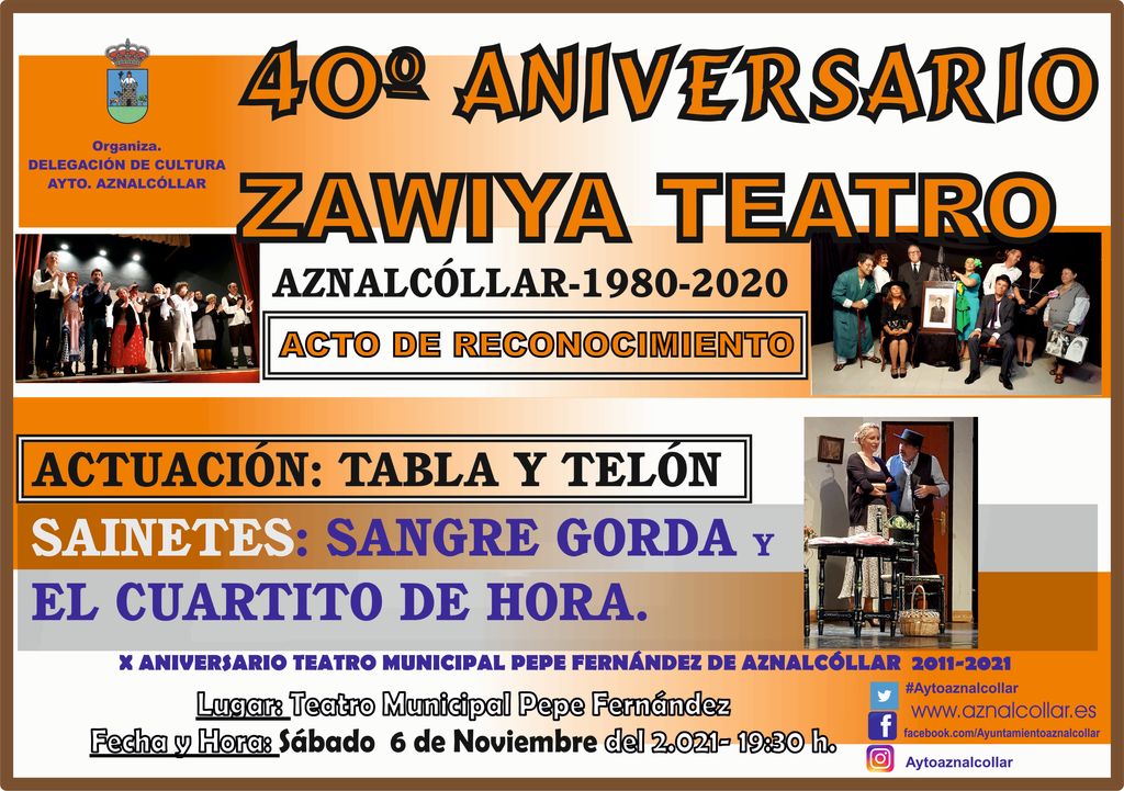 ➡️ La Delegación de Cultura del Excmo. Ayto. dé Aznalcòllar, rinde un merecido homenaje a nuestra compañía "Zawiya teatro", por su Cuadragésimo Aniversario.