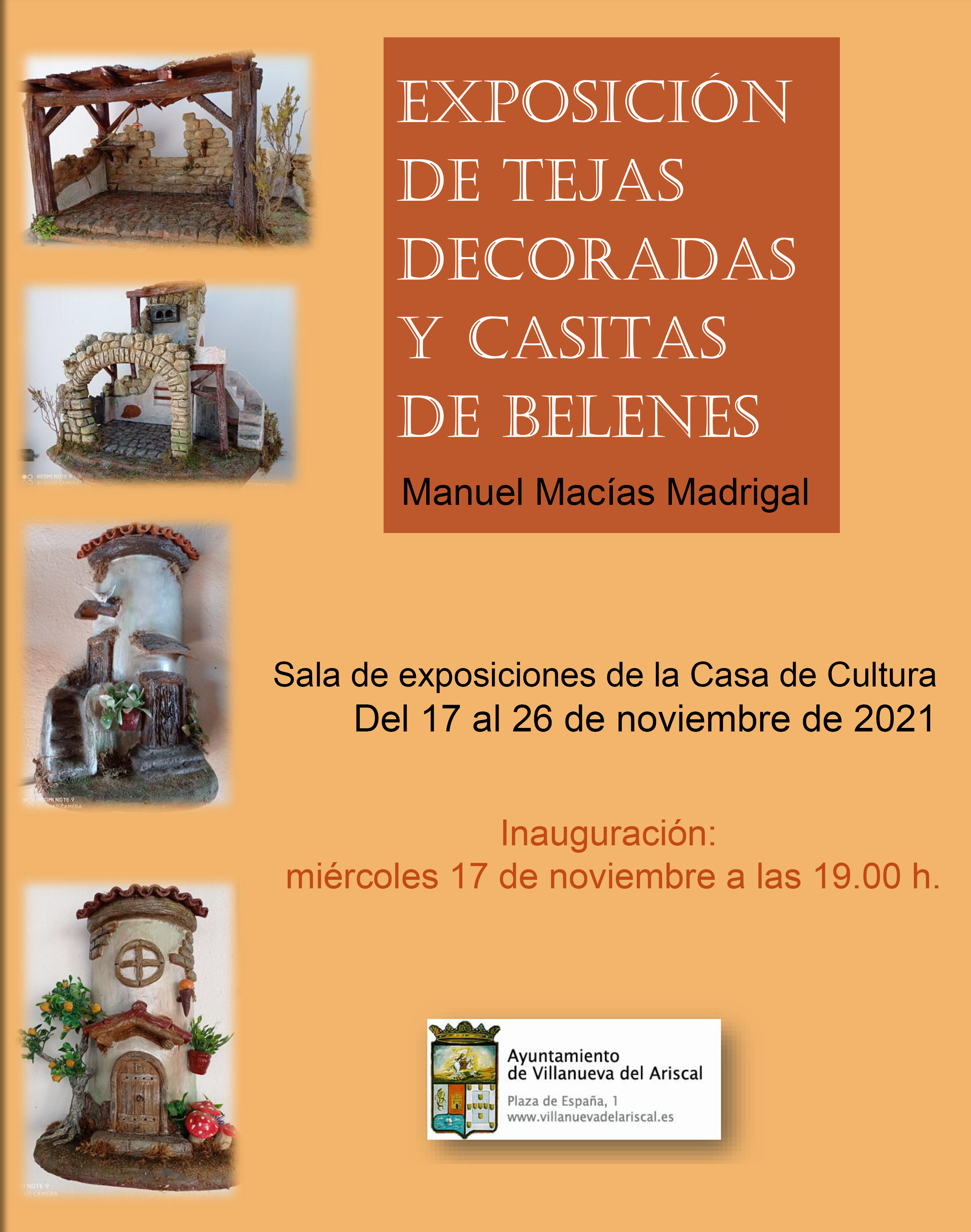 El próximo miércoles 17 de noviembre a las 19:00 h inauguramos la exposición de tejas decoradas y casitas de Belén de nuestro vecino Manuel Macías Madrigal.