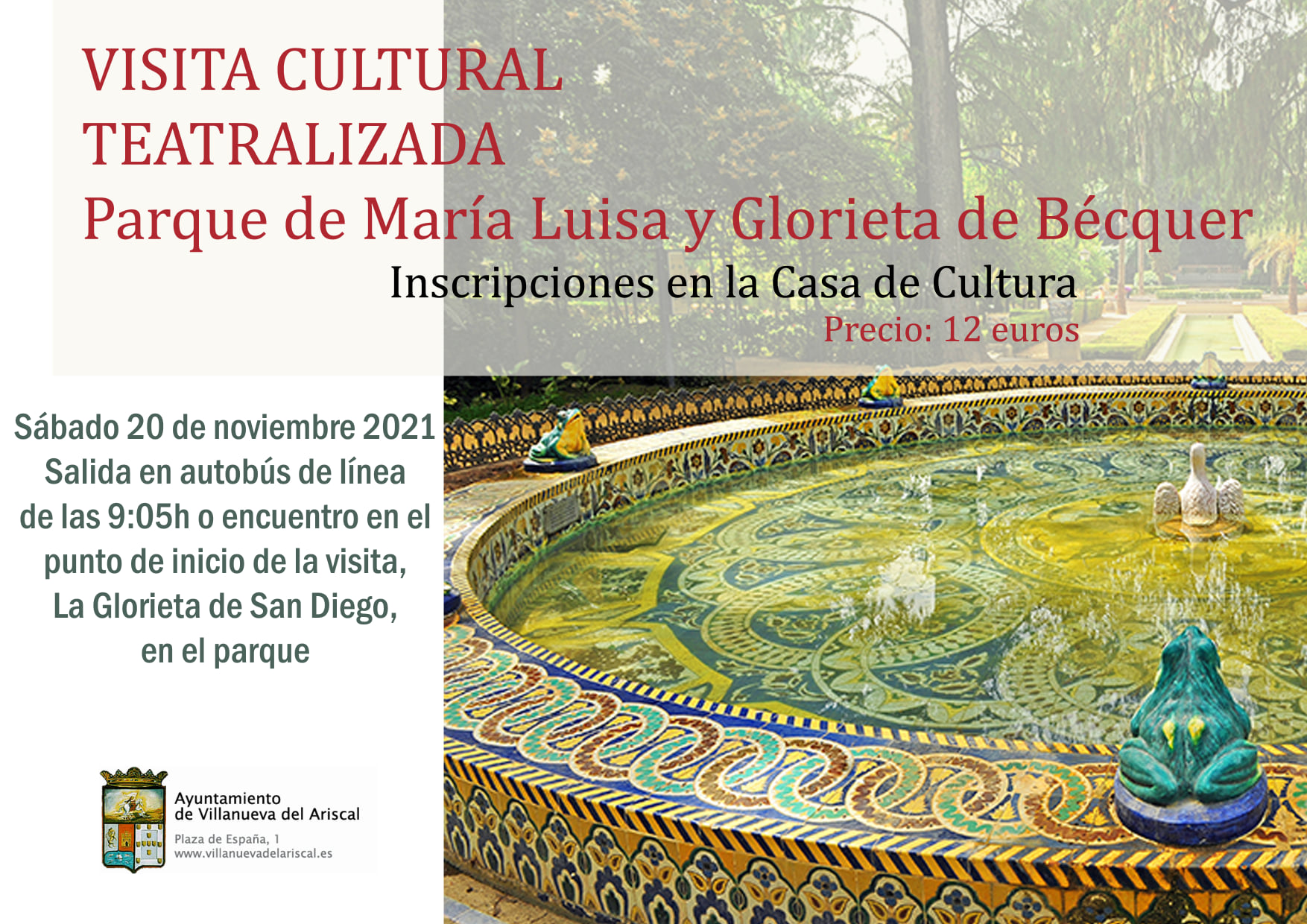 Ya puedes inscribirte en la Casa de Cultura para acompañarnos el sábado 20 a la Visita Cultural Teatralizada en el Parque de María Luisa y la Glorieta de Bécquer.