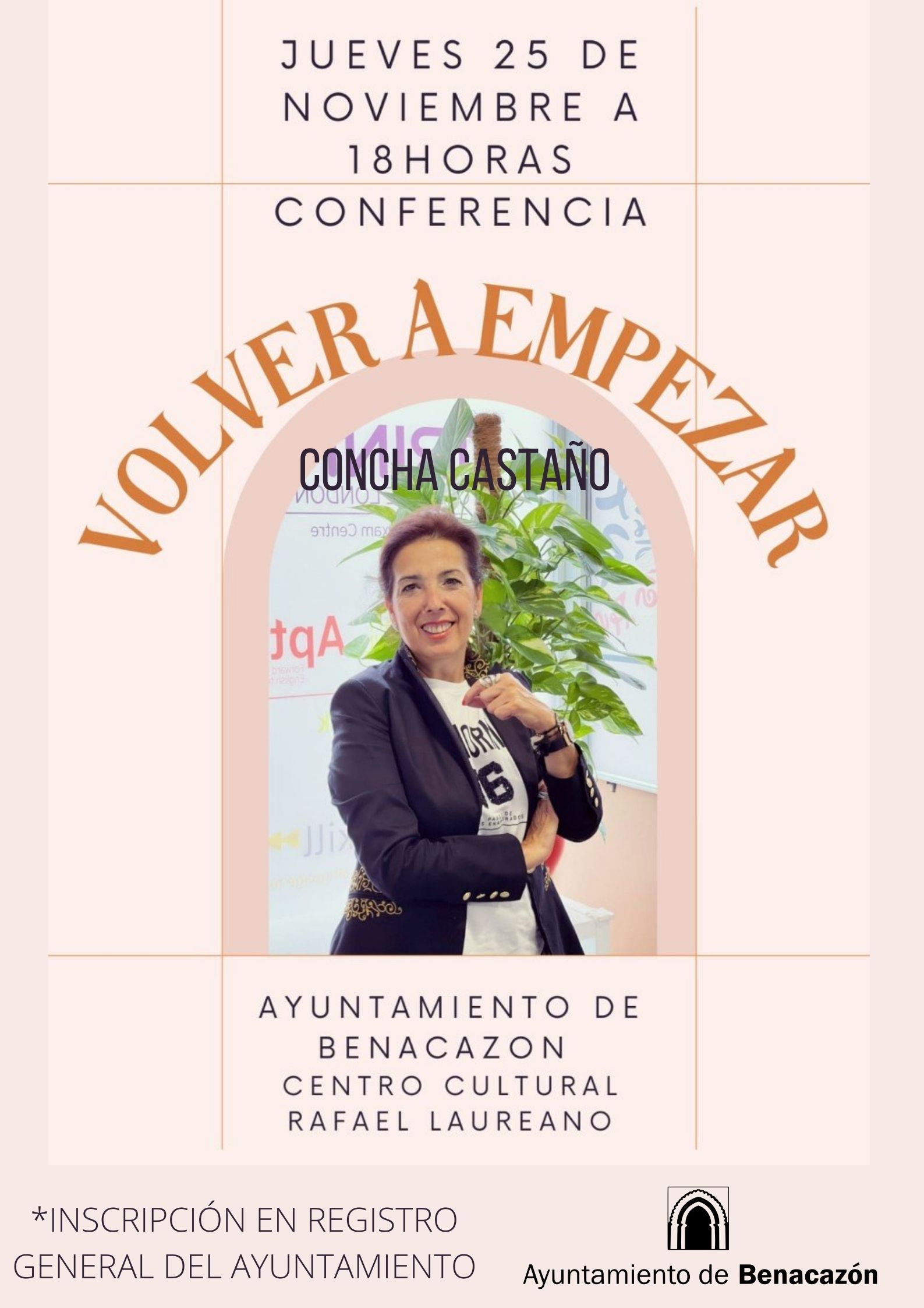 Finalizado el acto, a las 18:00 h. tendrá lugar el Taller-Conferencia "Volver a Empezar" (Centro Cultural Rafael Laureano), que será impartido por Concha Castaño, experta en Empoderamiento Femenino, cuyo objetivo es contribuir a que las mujeres se sientan mejor consigo mismas para poder tomar decisiones con más confianza y firmeza, incrementando su autoestima, lo cual les ayudará a encontrar un lugar idóneo en nuestra sociedad.