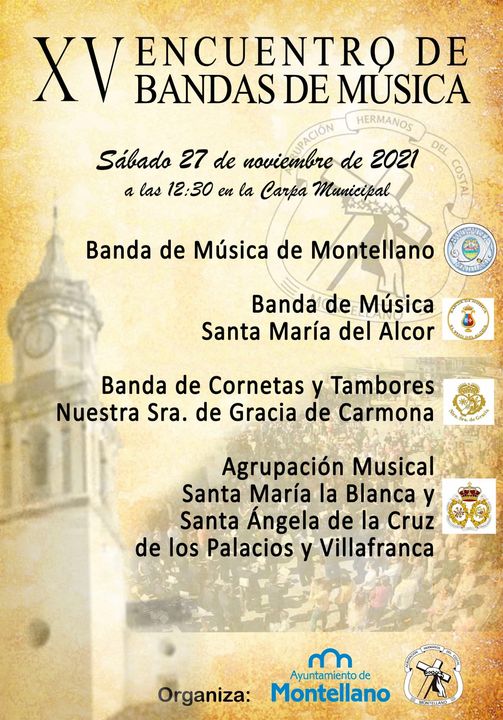 Sábado 27 de noviembre, el XV ENCUENTRO DE BANDAS DE MÚSICA organizado por la Agrupación Hermanos del costal junto con el Área de Cultura del Ayuntamiento de Montellano.