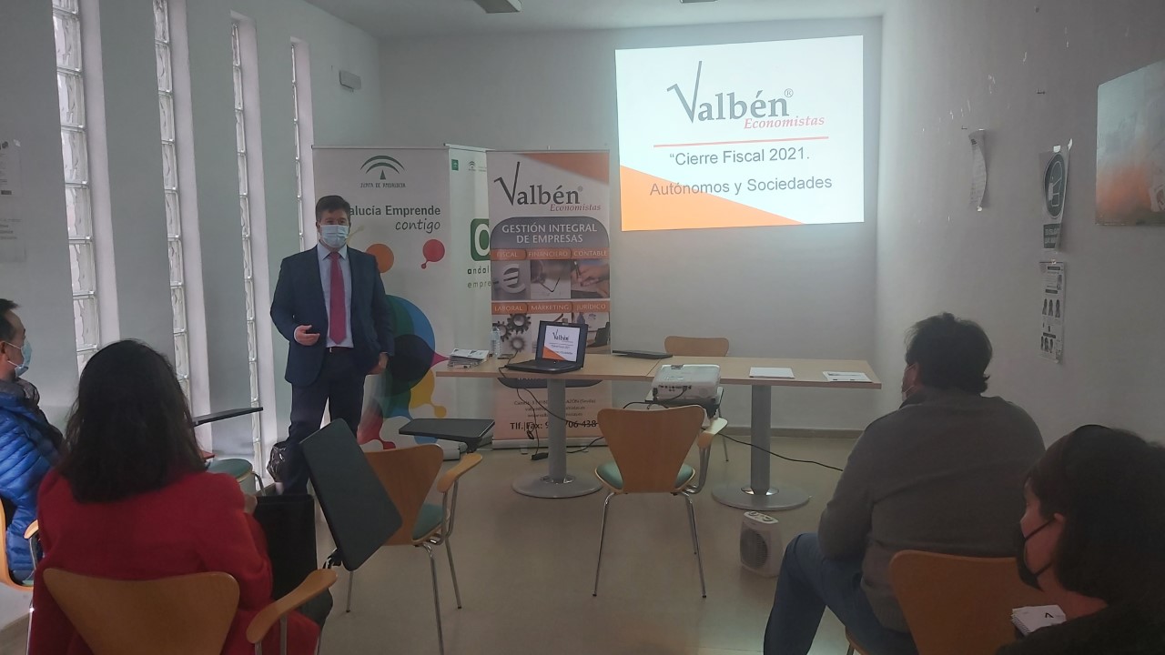 El Ayuntamiento de Benacazón informa que el pasado martes 30 de Noviembre el Alcalde, Pedro Oropesa, inauguró la sesión de formación sobre el "CIERRE FISCAL 2021 AUTÓNOM@S Y SL", desarrollada en la sede del CADE (Centro de Apoyo y Desarrollo Empresarial) de Benacazón -situado en el polígono Industrial LA CHOZA, calle Innovación, nº 18- a cargo del Economista y ponente Javier Valero.