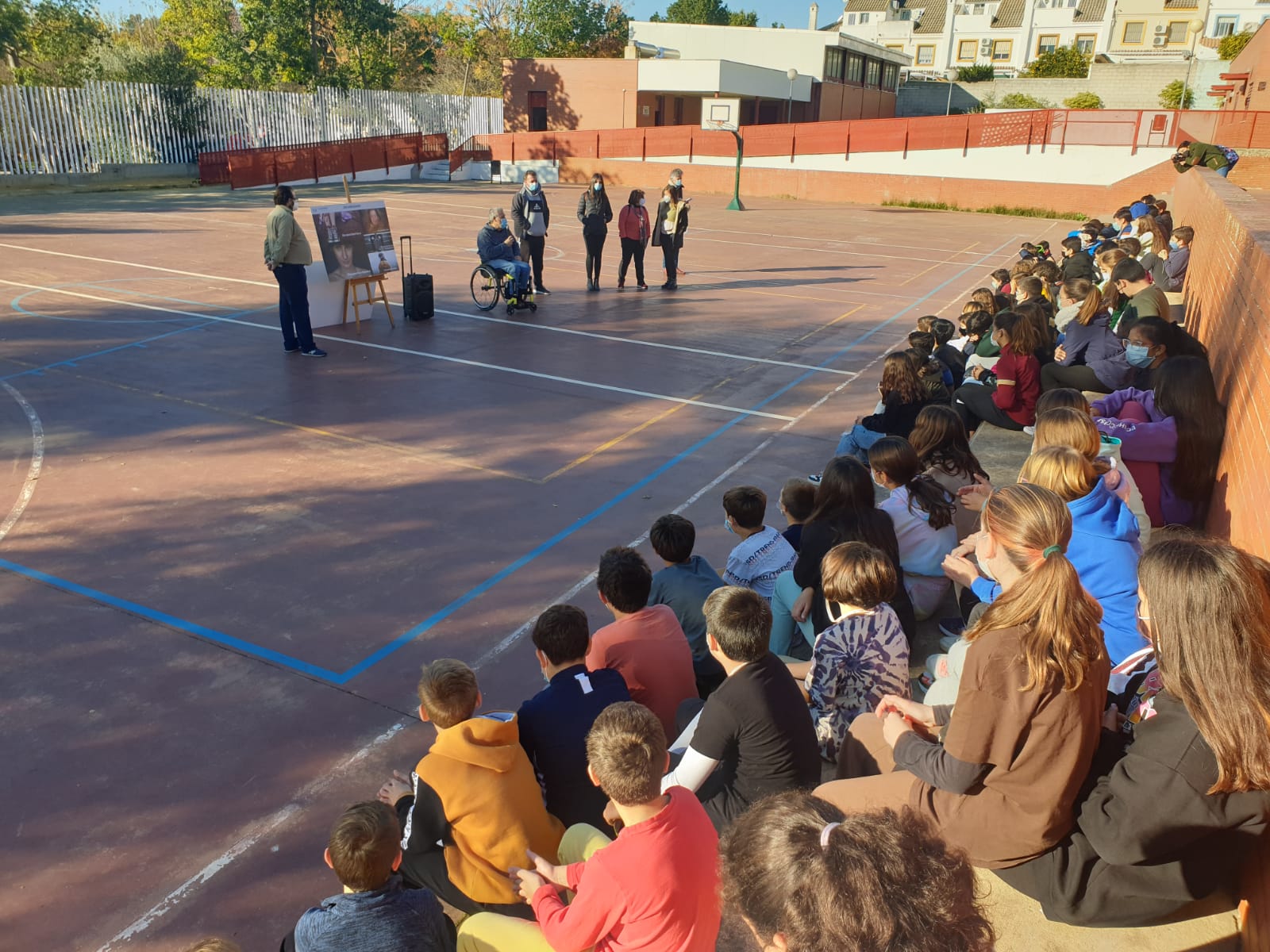 La Federación Provincial de Asociaciones de Personas con Discapacidad Física y Orgánica de Sevilla (COCEMFE) ha desarrollado esta semana el proyecto 'Protagonistas' en colegios e institutos de Castilleja de la Cuesta para dar visibilidad al papel del deporte adaptado en personas con discapacidad. La alcaldesa, Carmen Herrera, ha acompañado al presidente de la entidad, Juan José Lara, en la primera de las siete charlas que han ofrecido en el municipio. En concreto, en el CEIP Juan XXIII, Luis Cernuda, Gloria Fuertes, Hernán Cortés, Irlandesas y los IES Alixar y Pablo Neruda.