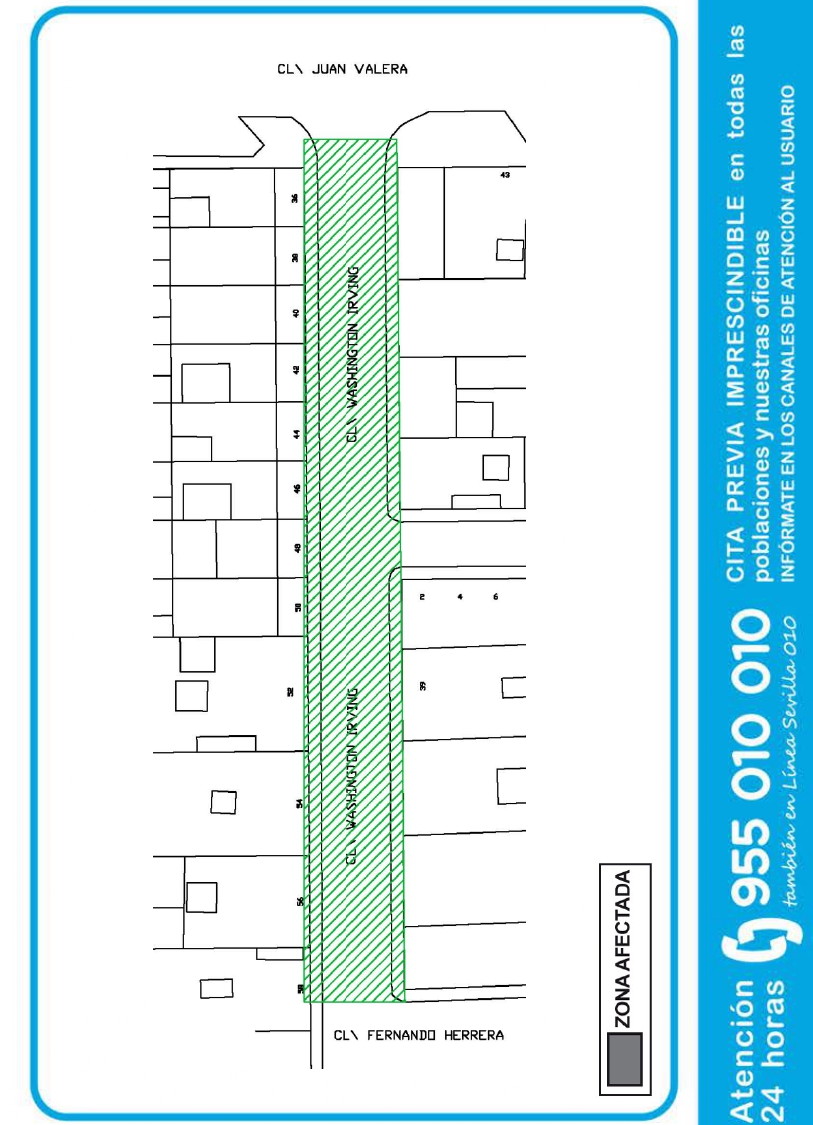 El lunes 20 de diciembre comienzan las obras de sustitución de las redes de abastecimiento y saneamiento en la calle Washington Irving. Concretamente en el tramo comprendido entre las calles Juan Valera y Fernando Herrera.