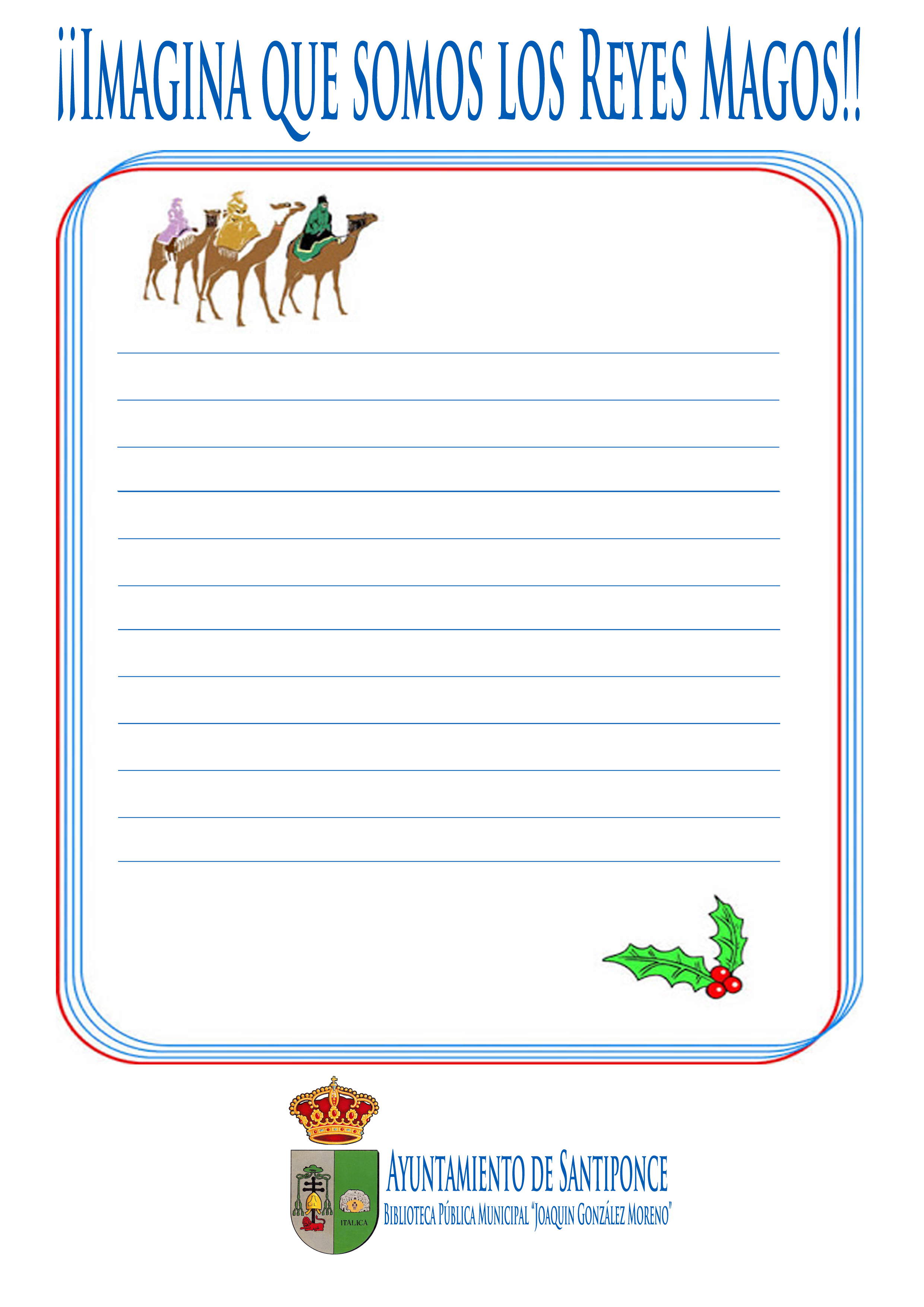 Participar es muy sencillo, pásate por la biblioteca y te personalizamos tu carta a los Reyes Magos, sólo tienes que decidir a qué mago vas a dirigir tu escrito, y escribir porqué eliges el regalo de ese libro que quieres tener en tus manos para leer y releer.