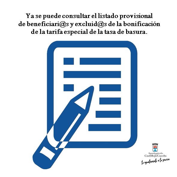 Ya se puede consultar el listado provisional de beneficiari@s y excluid@s de la bonificación de la tarifa especial de la tasa de basura.