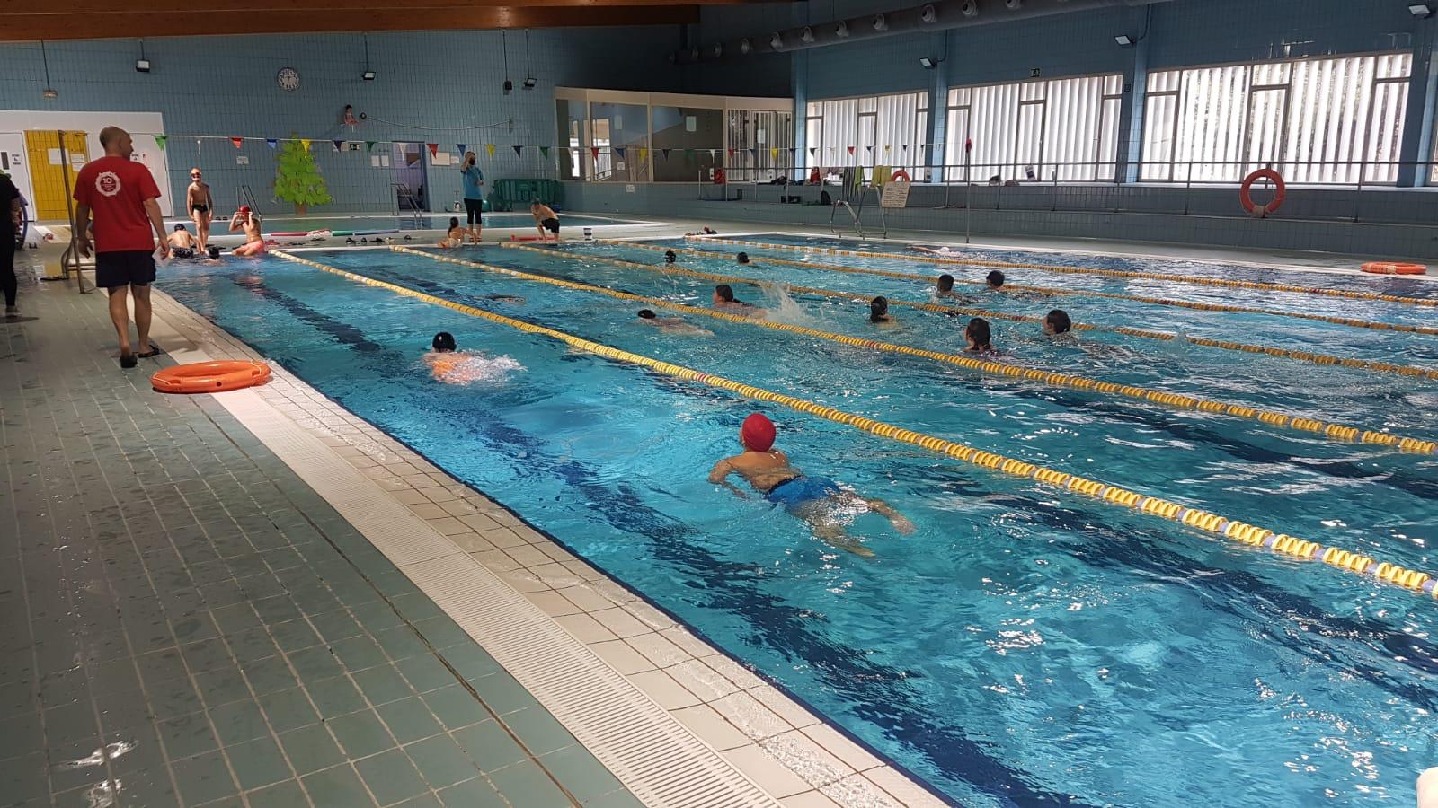 El alumnado de 5º de Primaria del colegio San Bartolomé ha visitado hoy las instalaciones de la piscina cubierta para disfrutar de una jornada en el medio acuático, actividad que forma parte del Plan de Deportes. La delegada municipal de Deportes, Inmaculada Galocha, ha acompañado a los chicos y chicas. Mañana les toca el turno a los alumnos de 6º de Primaria.