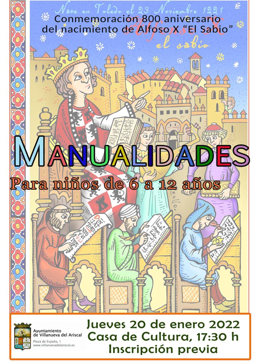 El jueves 20 tendrá lugar un taller de manualidades para niños de 6 a 12 años en la Casa de Cultura para conmemorar el 800 aniversario del nacimiento de Alfoso X El Sabio. Inscripciones en la Casa de Cultura.