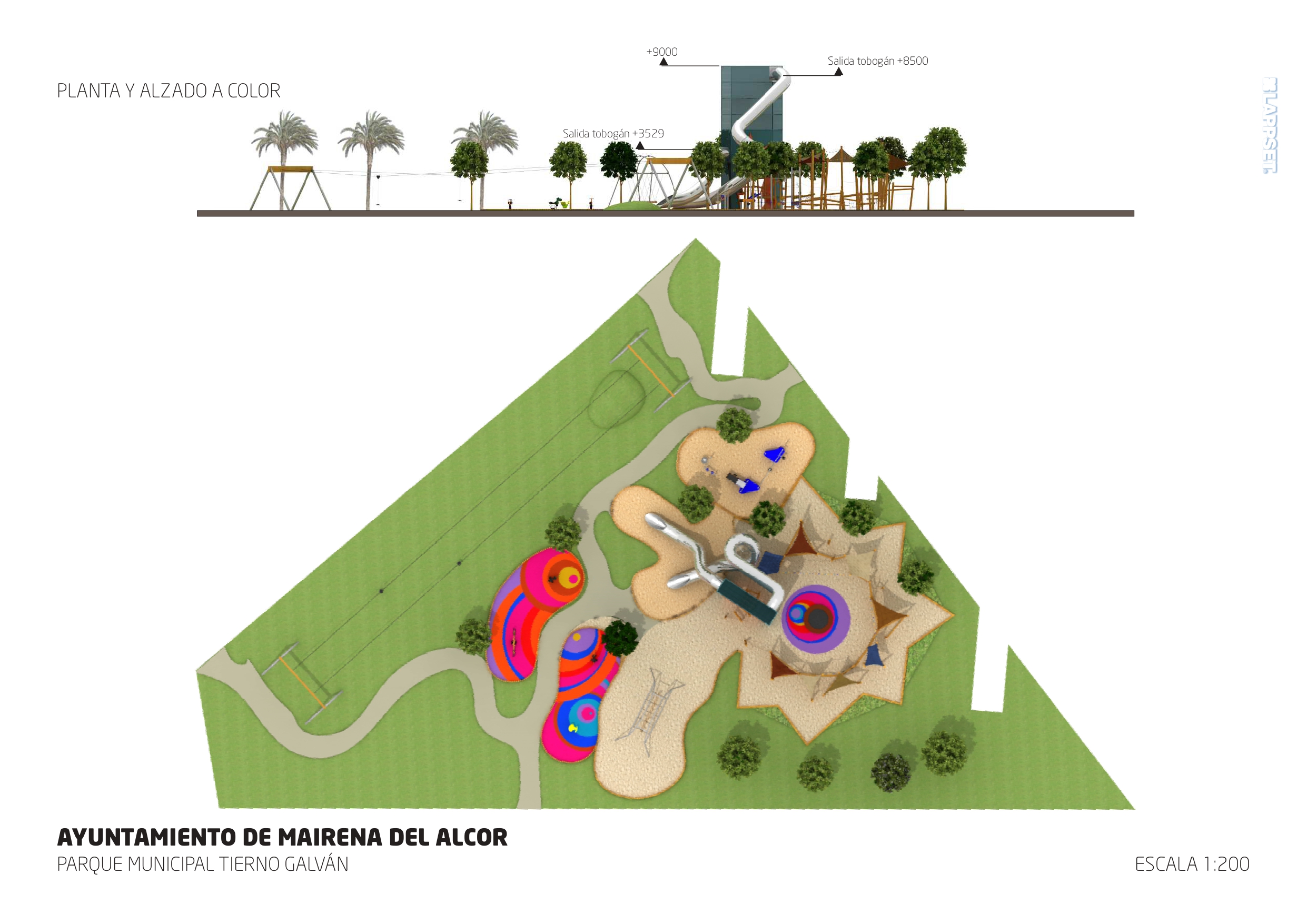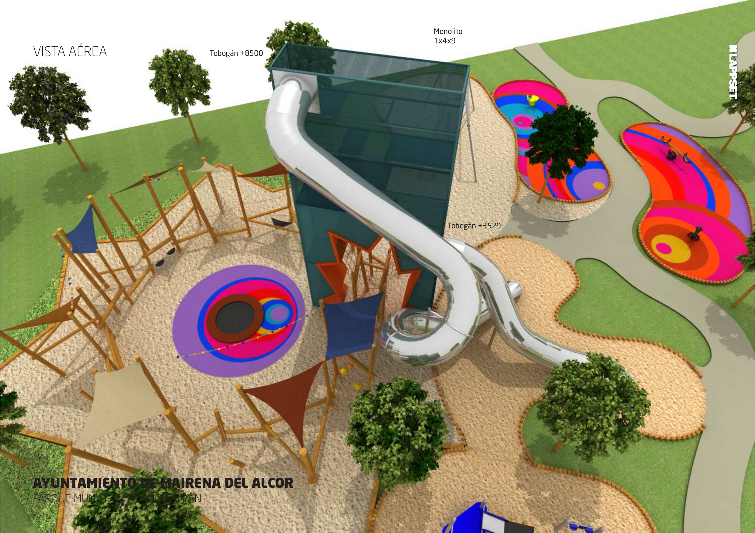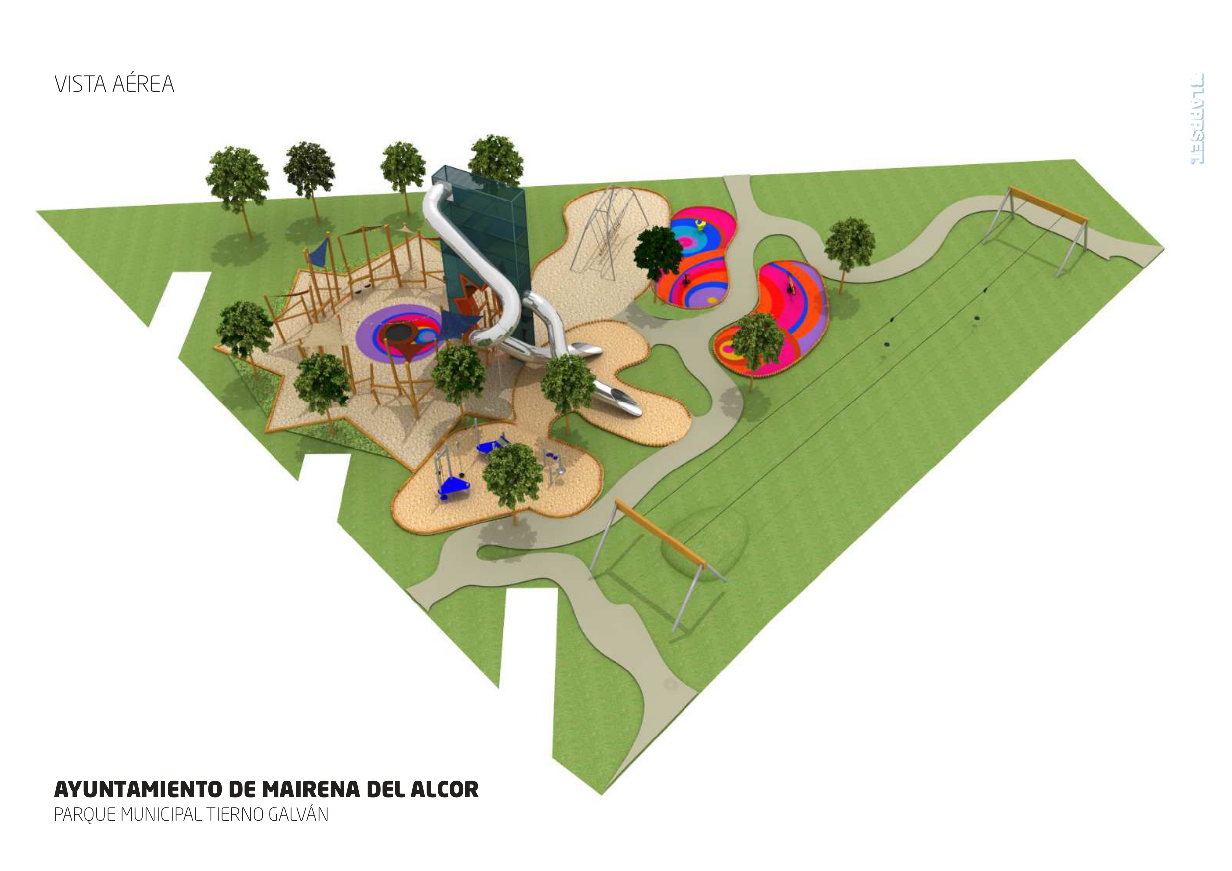 En cuanto a la dotación de juegos infantiles, el delegado municipal ha detallado "la Ciudad de la Infancia va a contar con una torre de nueve metros de altura, de la que parten dos toboganes a diferente altura, para su uso en función de la edad, además de una tirolina doble, zona de arenero, un anfiteatro central, una zona de caucho con cama elástica y otras instalaciones". La actuación se completa con la instalación de señalética