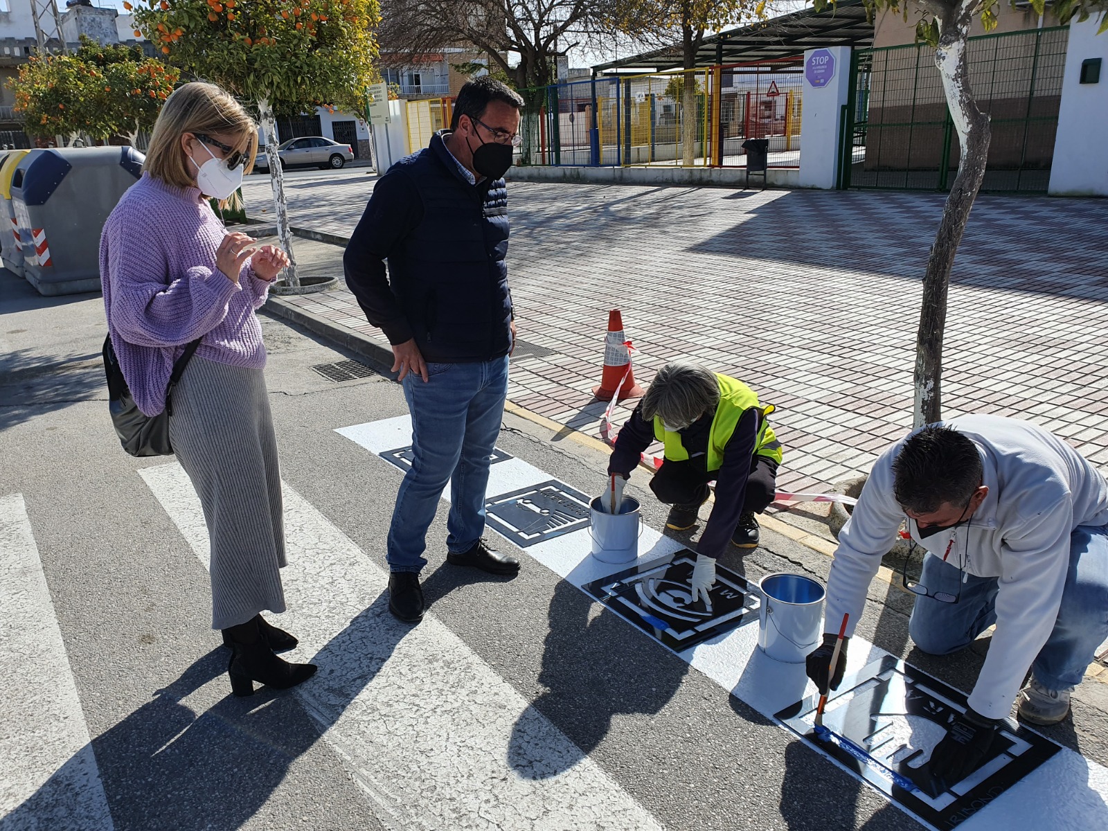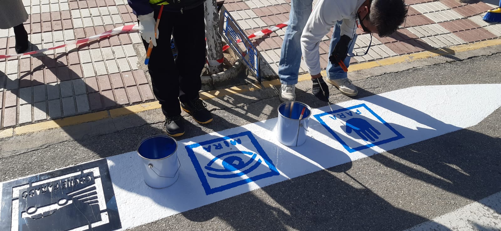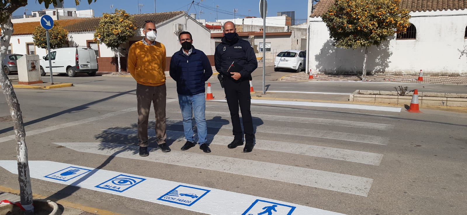 El convenio ha sido firmado por el Señor alcalde de la localidad, Juan Molero Gracia y Carlos Hervás-Gómez, secretario de Teavial y profesor titular en la Facultad de Ciencias de la Educación de la Universidad de Sevilla. Se trata de cuatro pictogramas pintados en azul (color característico de TEA) sobre el blanco de los pasos de cebra que se sitúan en la primera y última franja de los mismos con el objetivo de que la visión sea clara.
