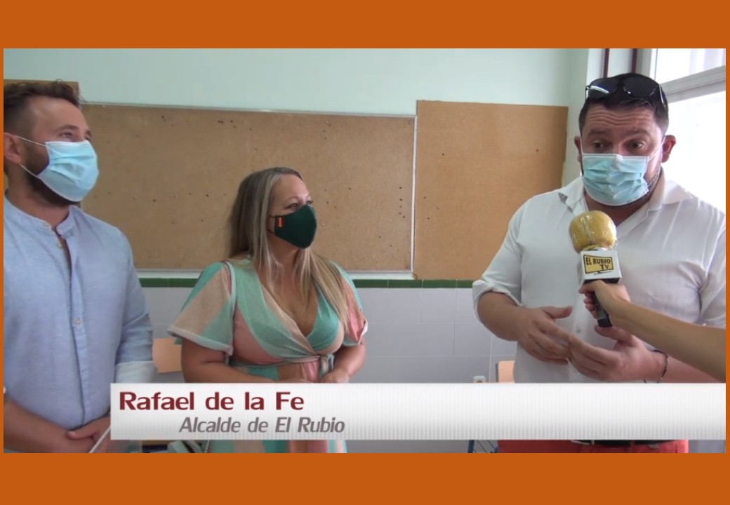 El alcalde de El Coronil y la alcaldesa de Coripe visitan el colegio de El Rubio para ver las primeras mamparas que han sido instaladas con el fin de aumentar la protección del alumnado y de los docentes.