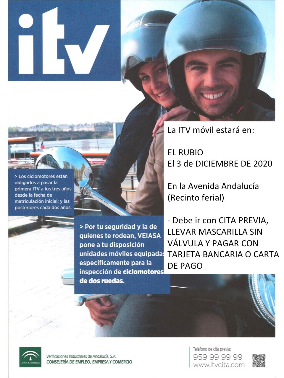 El Ayuntamiento de El Rubio informa que La ITV móvil estará en el municipio el 3 de DICIEMBRE DE 2020, en la Avenida Andalucía (Recinto ferial)