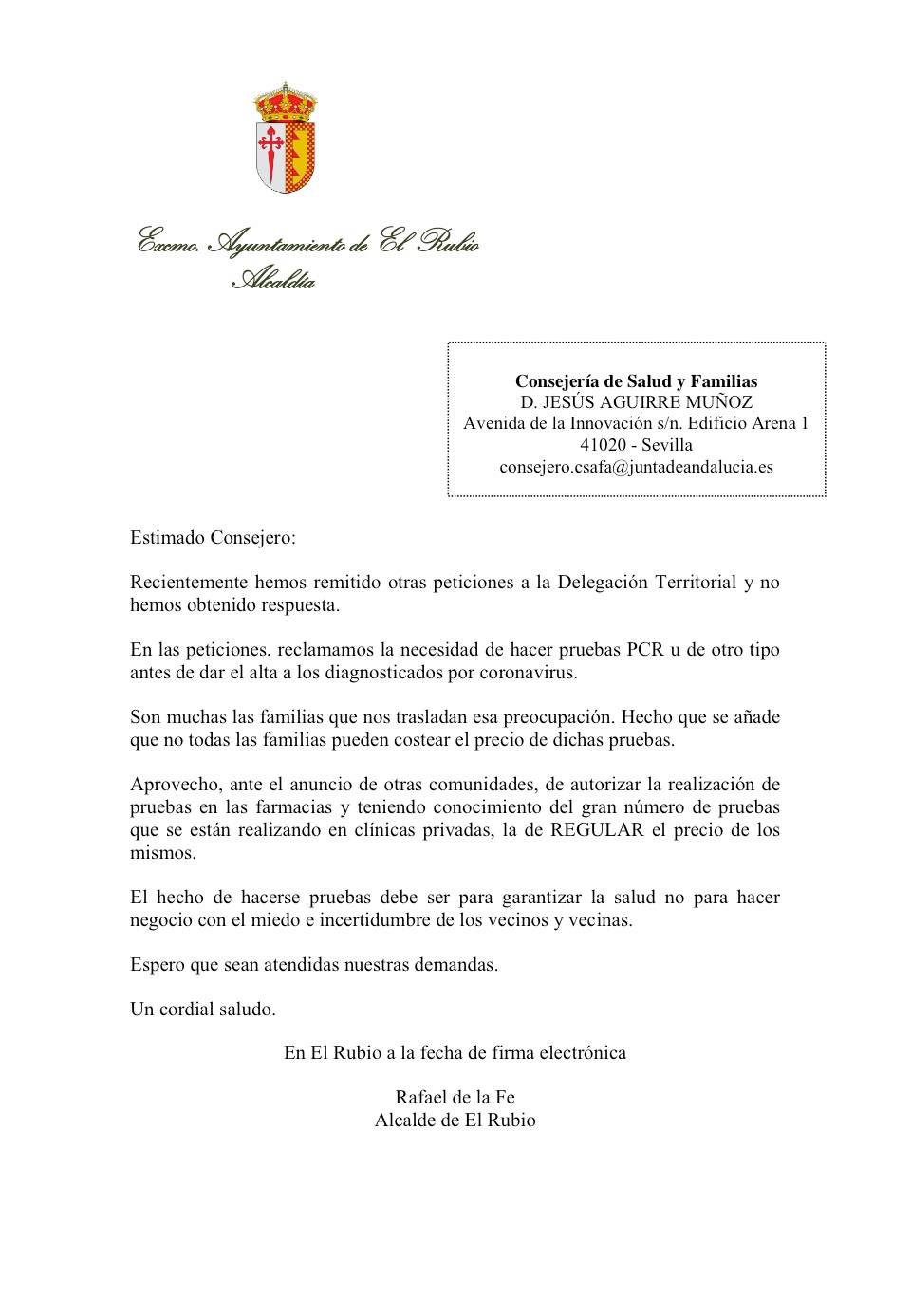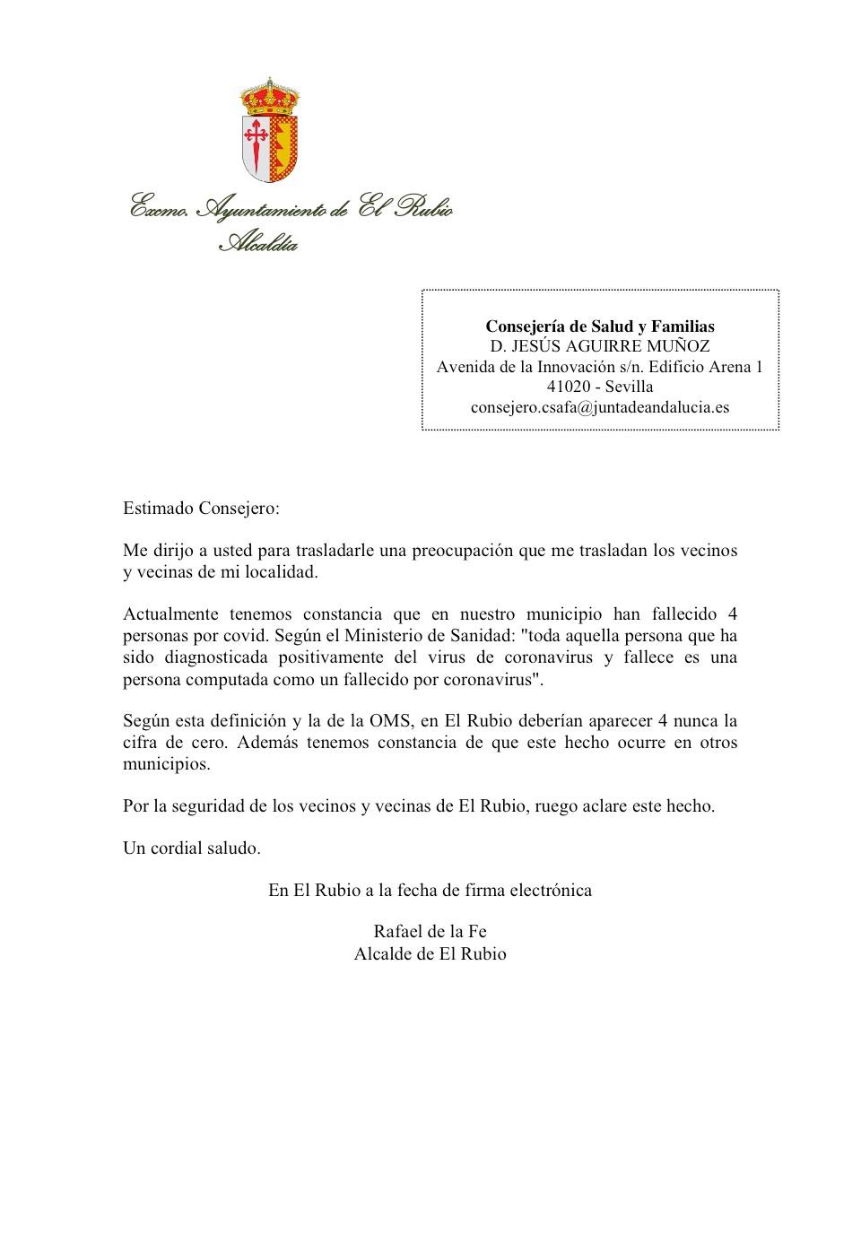 Por la seguridad de los vecinos y vecinas de El Rubio, ruego aclare este hecho.