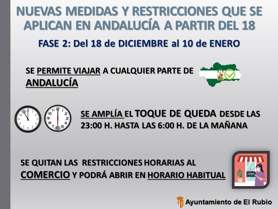 NUEVAS MEDIDAS Y RESTRICCIONES QUE SE APLICAN EN ANDALUCÍA A PARTIR DEL 18 DE DICIEMBRE.