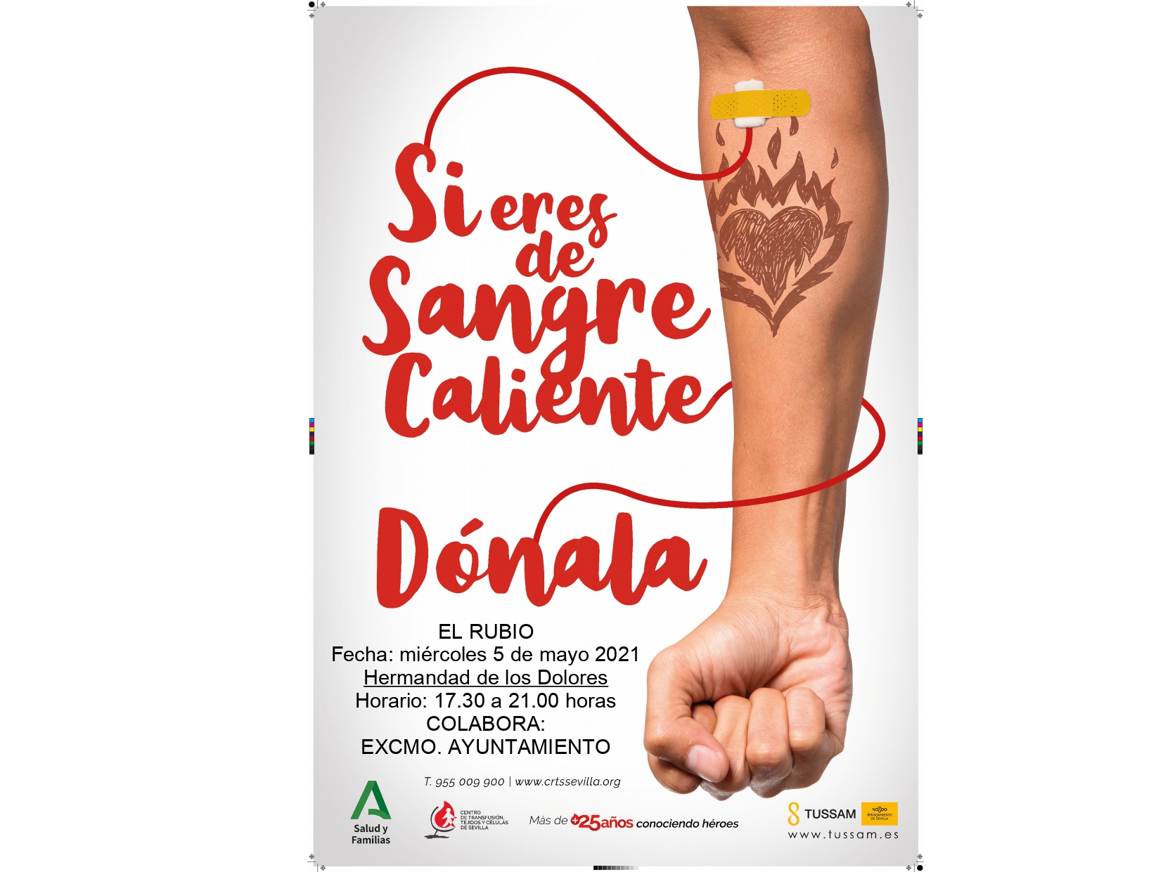 La página web del Centro de Transfusión Sanguínea es: www.crtssevilla.org. En ella podrán acceder al calendario de colectas, dispondrán de información útil para donantes de sangre, de tejidos y de médula ósea, enlaces, noticias, etc... También se pueden enviar sugerencias, peticiones, etc...