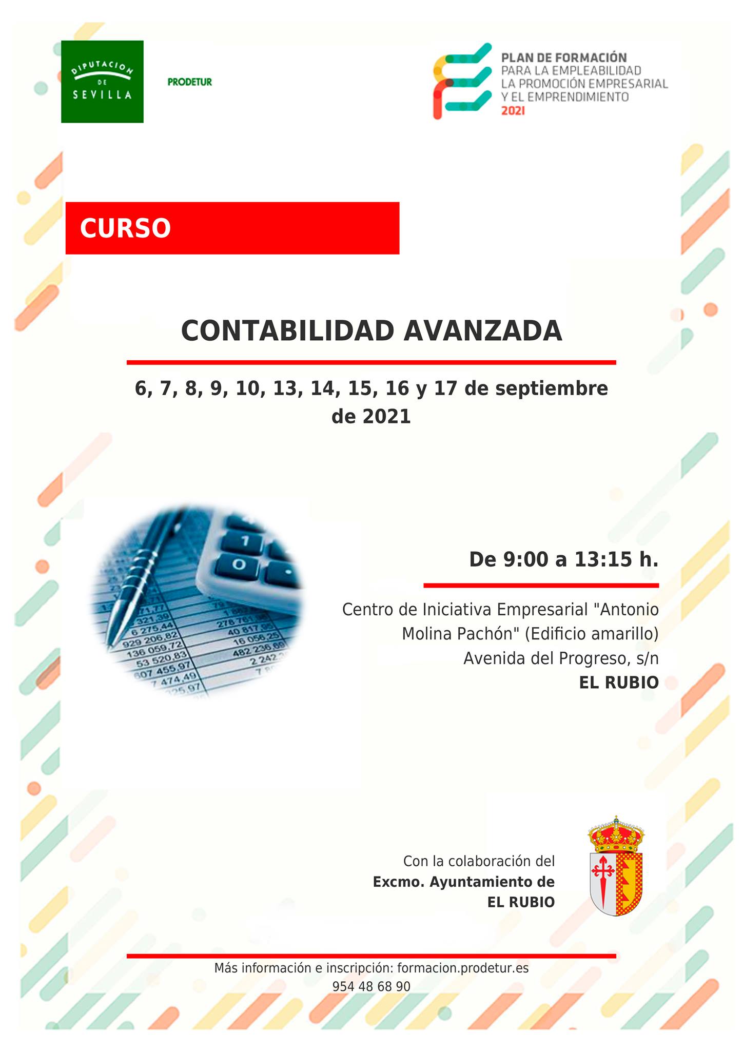 Abierto el plazo de inscripción para el curso "CONTABILIDAD AVANZADA" , que organiza La Diputación de Sevilla, a través de su sociedad Prodetur S.A.U, en colaboración con el ayuntamiento de El Rubio.