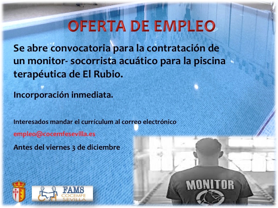 un monitor- socorrista acuático para la piscina terapéutica de El Rubio.