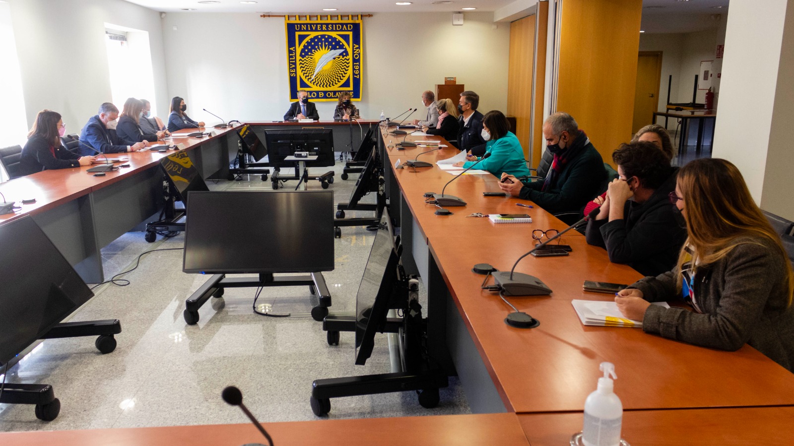 El vicerrector de Cultura y Políticas Sociales David Cobos Sanchiz se ha reunido con los representantes municipales. En el acto también han estado presentes Rocío Cruz Díaz, directora académica del Aula Abierta de Mayores; Julia Muñoz Pérez y Carmen Ramírez Santos, coordinadoras técnicas de la misma; José Luis Sarasola Sánchez-Serrano, director general de Innovación Social de la UPO; y María José Parejo Guzmán, directora académica de Integración y Diversidad Funcional de la Universidad Pablo de Olavide.