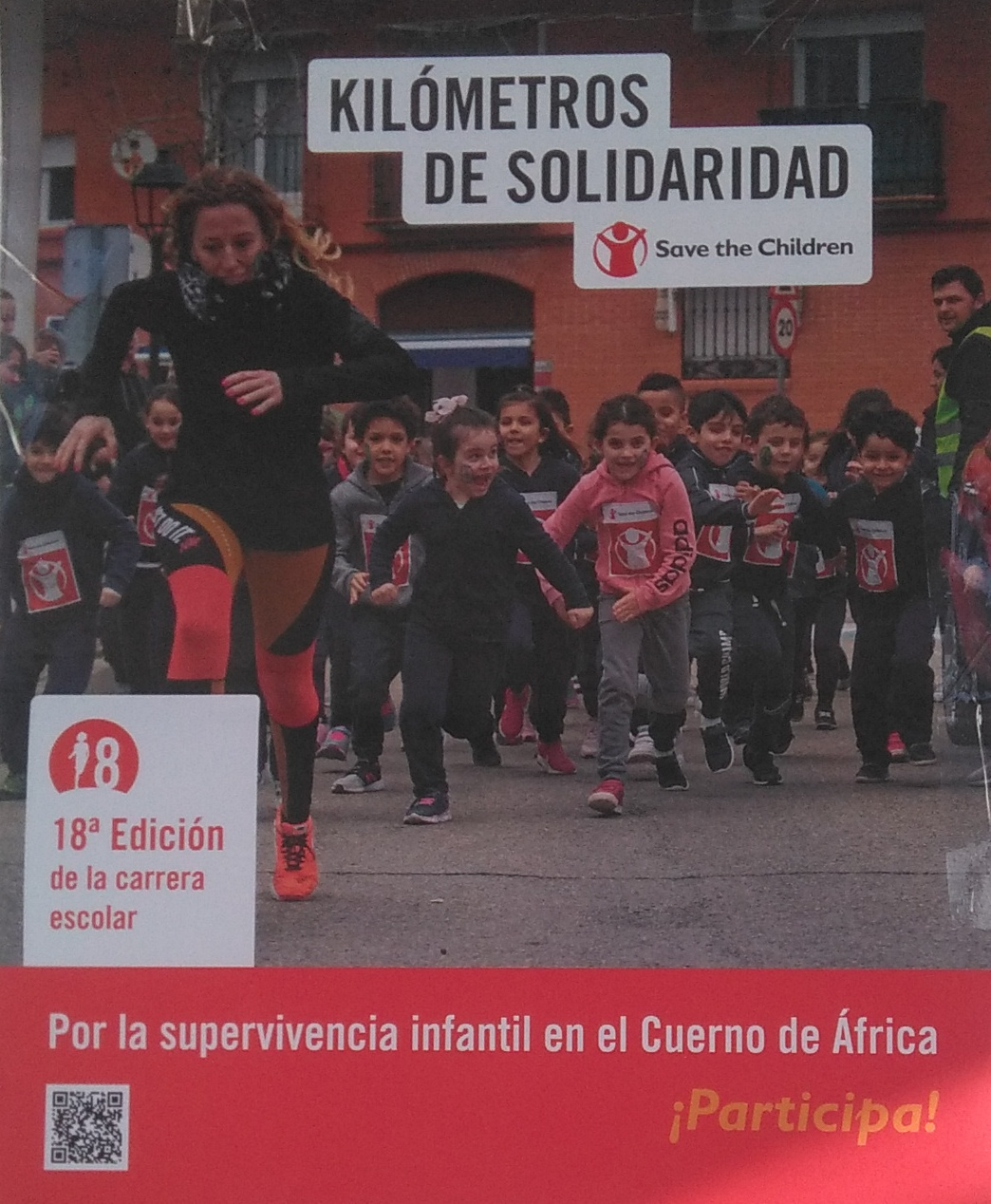 Bajo el lema "kilómetros de Solidaridad", son ya 18 años los que la entidad Save the Children promueve este evento con la finalidad de que ningún niño del mundo pase hambre, inculcando a la vez valores solidarios entre nuestros escolares incitando a la participación de los centros educativos por esta causa.