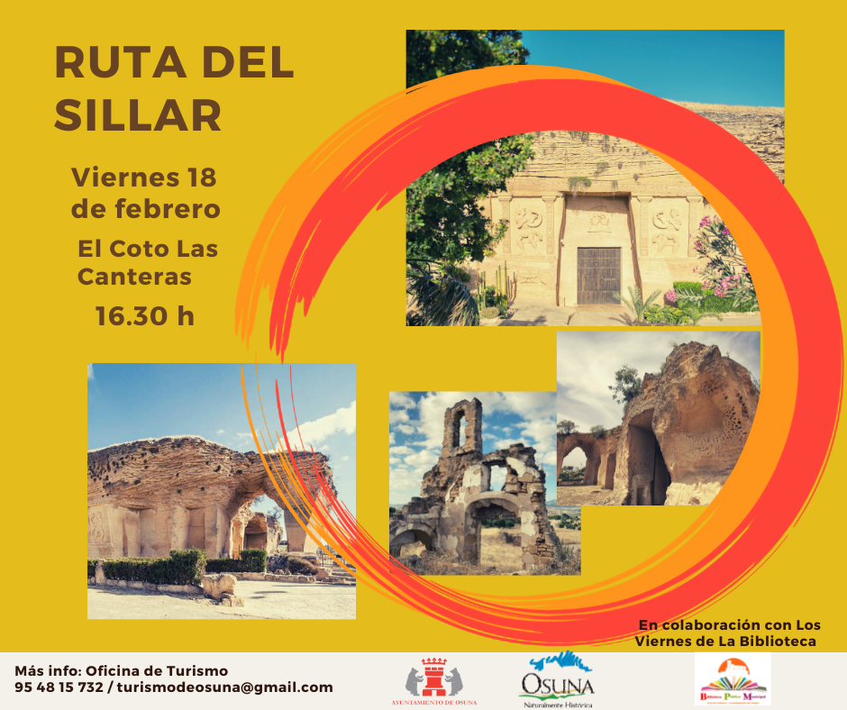 La Delegación municipal de Cultura, a través del programa 'Los Viernes de la Biblioteca' junto con la Oficina Municipal de Turismo organizan este próximo viernes, 18 de febrero, una visita para los vecinos y vecinas de Osuna que deseen participar conociendo la nueva Ruta del Sillar, que se ha creado desde el Ayuntamiento como un nuevo recurso turístico.