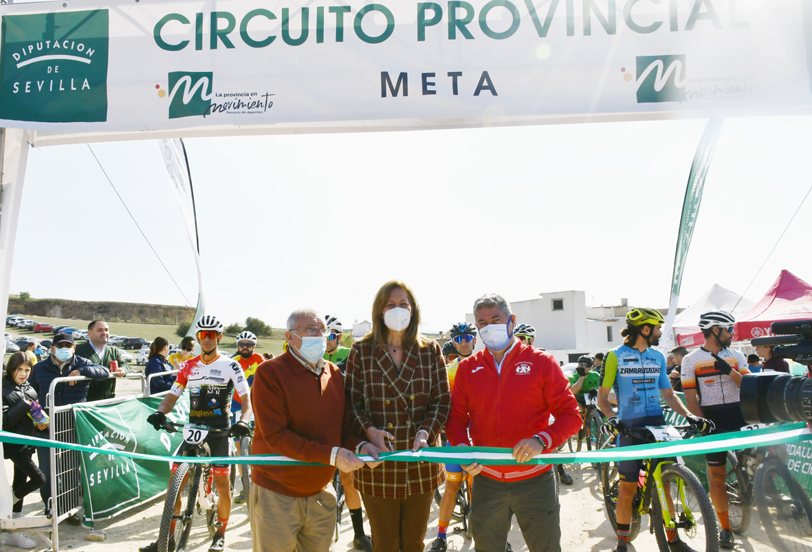 Concluidas las carreras de las escuelas deportivas de ciclismo de esta modalidad en las categorías de promesa, principiante, alevín e infantil, la alcaldesa de Osuna, Rosario Andújar, acompañada por el delegado municipal de Deportes, Benito Eslava, y el vicepresidente de la Federación Andaluza de Ciclismo y delegado provincial en Sevilla, Juan Fernández, procedía al corte de cinta para dar la salida las otras categorías que han competido en esta última prueba de este circuito provincial.