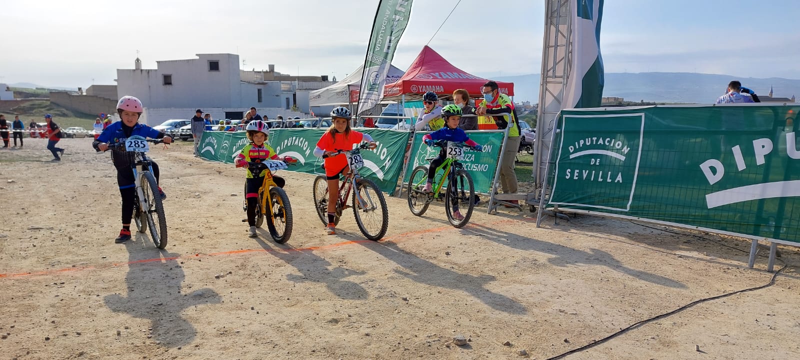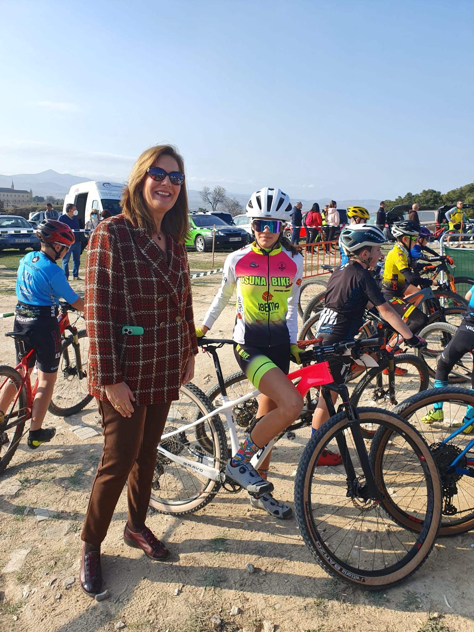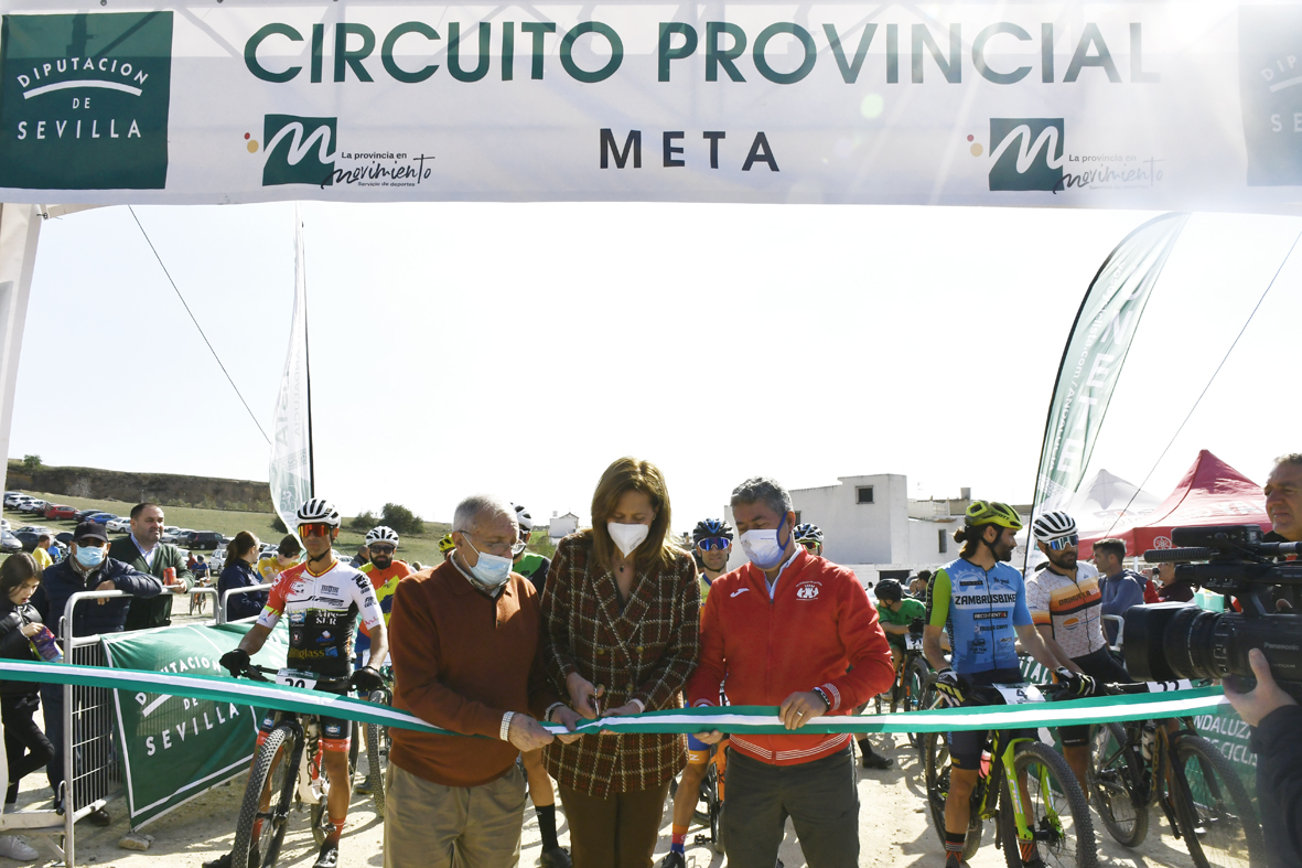 Concluidas las carreras de las escuelas deportivas de ciclismo de esta modalidad en las categorías de promesa, principiante, alevín e infantil, la alcaldesa de Osuna, Rosario Andújar, acompañada por el delegado municipal de Deportes, Benito Eslava, y el vicepresidente de la Federación Andaluza de Ciclismo y delegado provincial en Sevilla, Juan Fernández, procedía al corte de cinta para dar la salida las otras categorías que han competido en esta última prueba de este circuito provincial.