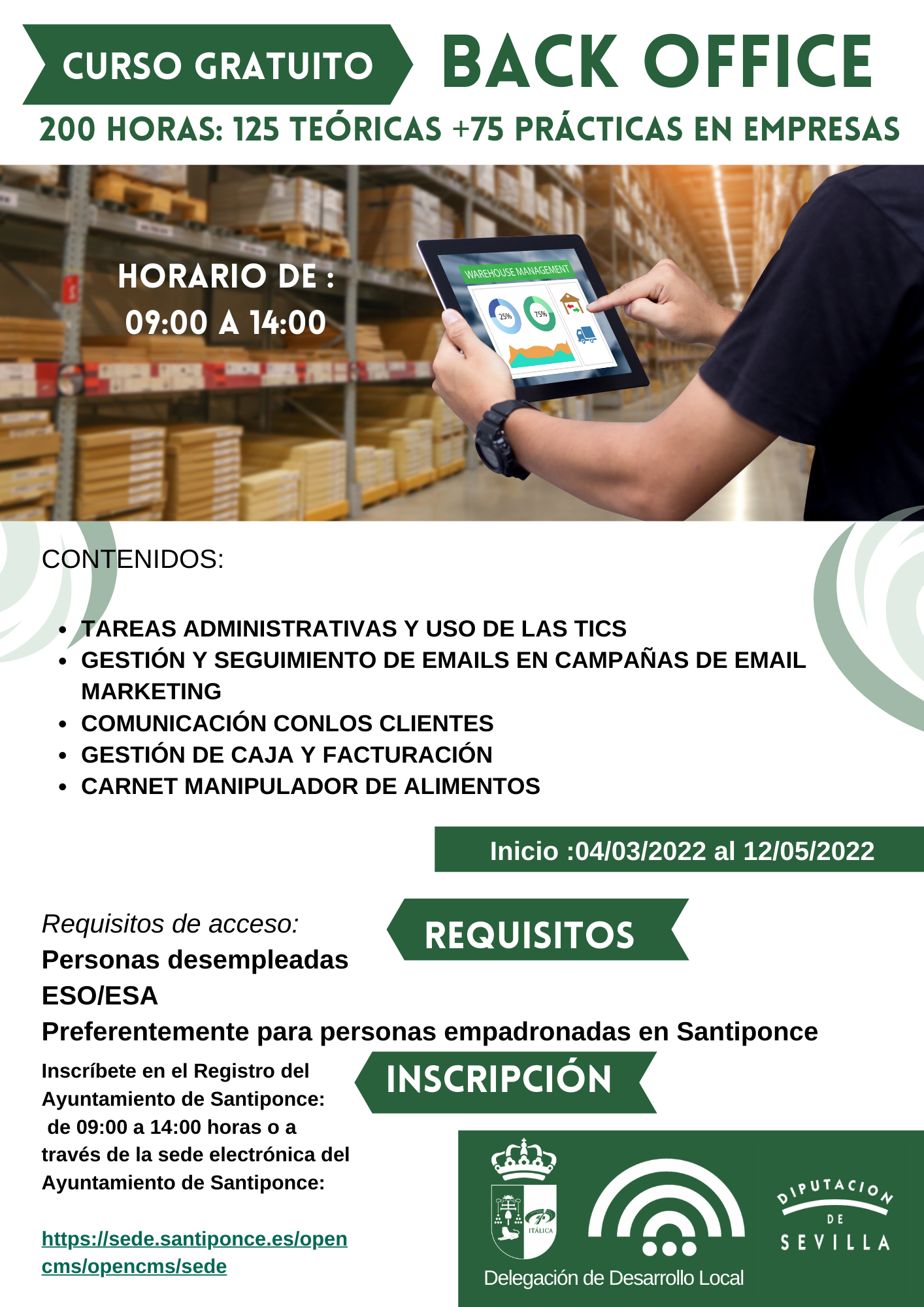 Curso gratuito de 200 horas: 125 teóricas 75 prácticas en empresas