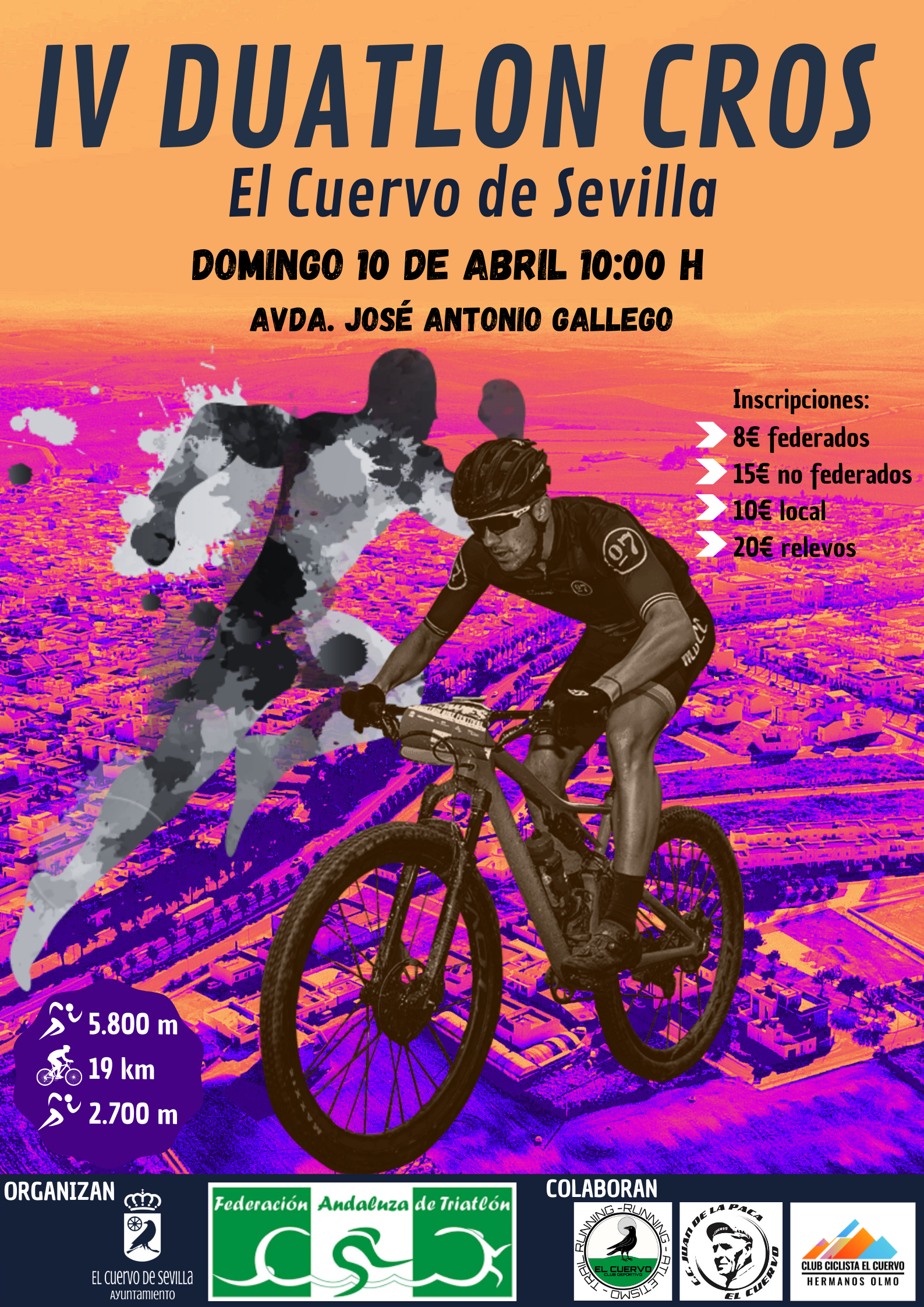 Organizan esta prueba el Ayuntamiento de El Cuervo (Delegación de Deportes) y la Federación Andaluza de Triatlón. Colaboran asociaciones locales de deportes.
