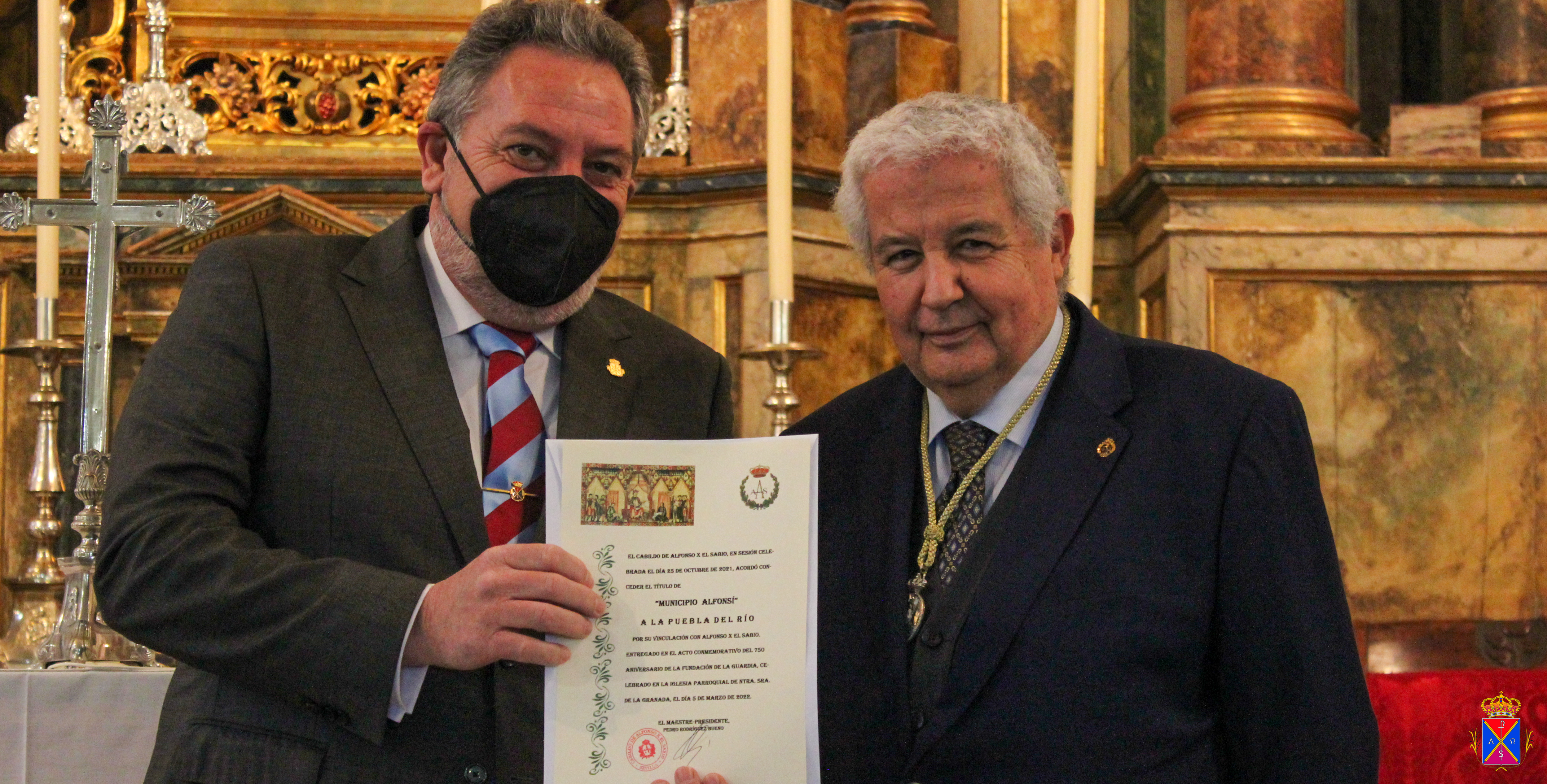 La Puebla del Río ya es "municipio alfonsí". El alcalde, Manuel Bejarano, recibía de manos del presidente del Cabildo Alfonso X El Sabio de Sevilla, Pedro Rodríguez, este preciado reconocimiento en un acto conmemorativo del 750 aniversario de la localidad que celebramos en 2022, y que culminó con un extraordinario concierto de música medieval a cargo de la coral Ensemble Enharmonía, dirigida por Antonio García Herrera y acompañada de músicos del grupo Artefactum.