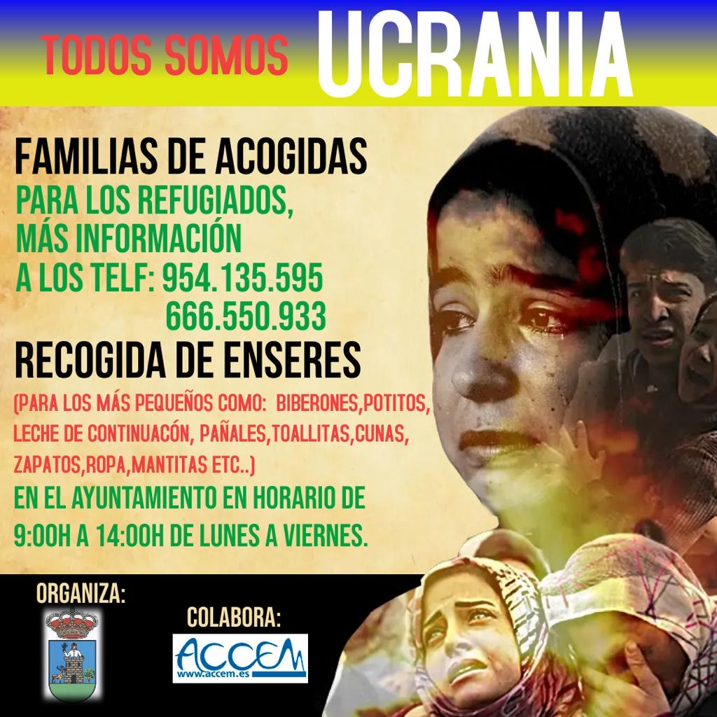 El Excmo. Ayto de Aznalcollar, a través de su Equipo de Gobierno, ha venido trabajando conjuntamente con la Fundación Accem para la recogida de enseres que más escasean, así como, la acogida de personas ucranianas. Todo vecino/a interesado en acoger en nuestra localidad a personas ucranianas pueden ponerse en contacto con nosotros a través de los siguientes teléfonos y horario: ⏰ De Lunes a Viernes de 9 a 14 h 666.550.933 ☎️ 954.135.595 Lugar de entrega de las necesidades anunciadas en dicho cartel. Si estas interesado en acogida llámanos. Para más información a través de cualquier miembro del Equipo de Gobierno y estos teléfonos de contactos donde se os informará de las necesidades y pasos a seguir para la acogida de personas ucranianas y/o necesidades. Todas estas gestiones están guiadas a través del Ministerio de España y dicha fundación. !!UCRANIA NOS NECESITA!! #NoAlaGuerra #AznalcollarSolidariaImagen