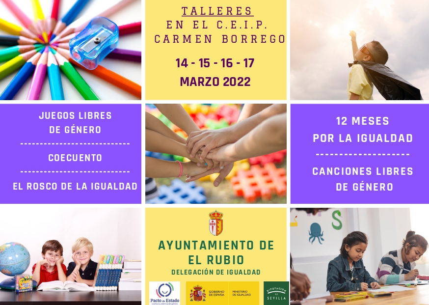 TALLERES EN EL C.E.I.P. CARMEN BORREGO 14 - 15 - 16 - 17 MARZO 2022 Imagen Ubicación Categoría noticia Educación Mostrar en el carrusel de la sección No Fecha Mar, 15/03/2022 - 11:33 Más información http://www.elrubio.es/es/actualidad/noticias/TALLERES-EN-EL-C.E.I.P.-CARMEN-BOR…