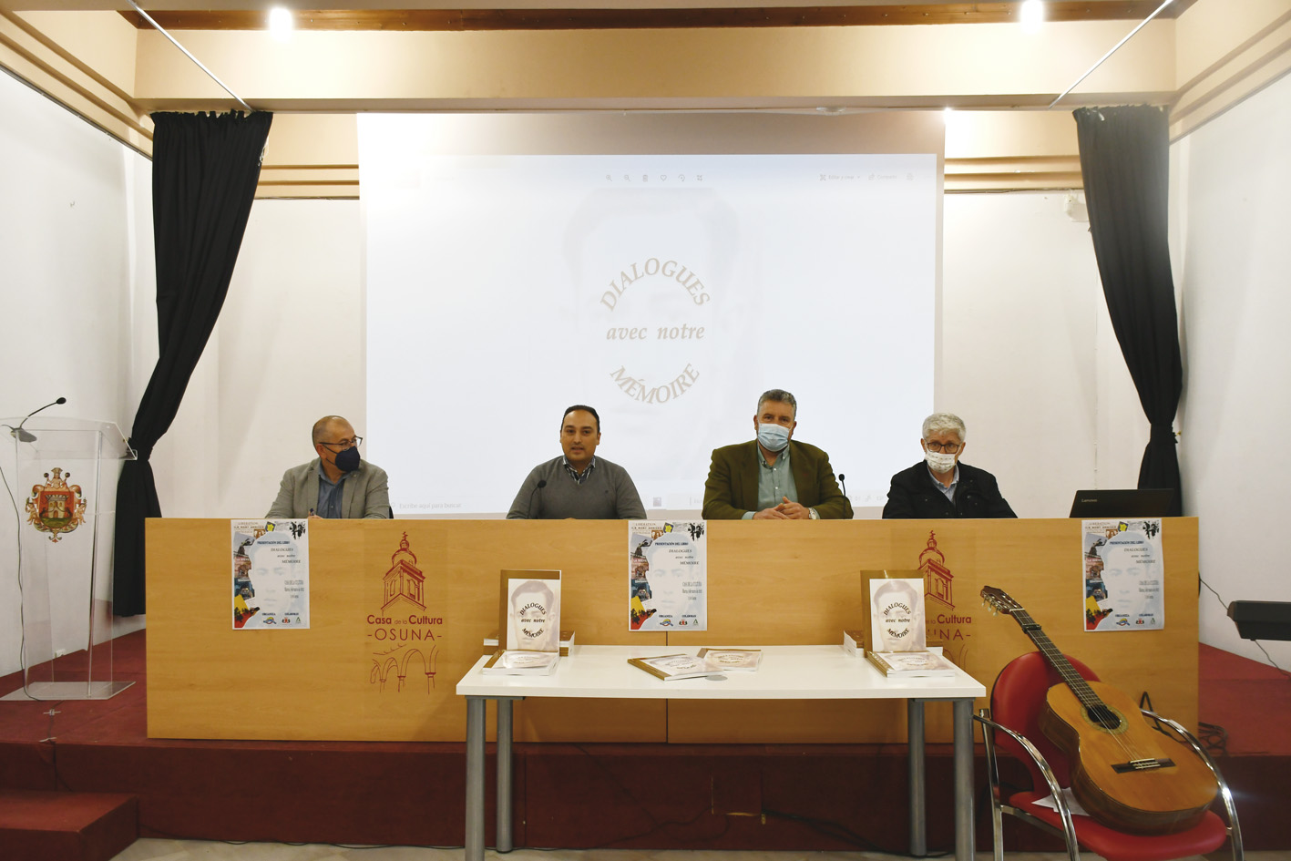 El salón de actos de la Casa de la Cultura ha acogido hoy la presentación del libro 'Dialogues avec la mémoire' (Diálogos con la memoria), un proyecto de documentación e investigación sobre la memoria histórica que ha realizado el alumnado de 4º de ESO del IES Sierra Sur de Osuna durante el pasado curso 2020-2021.