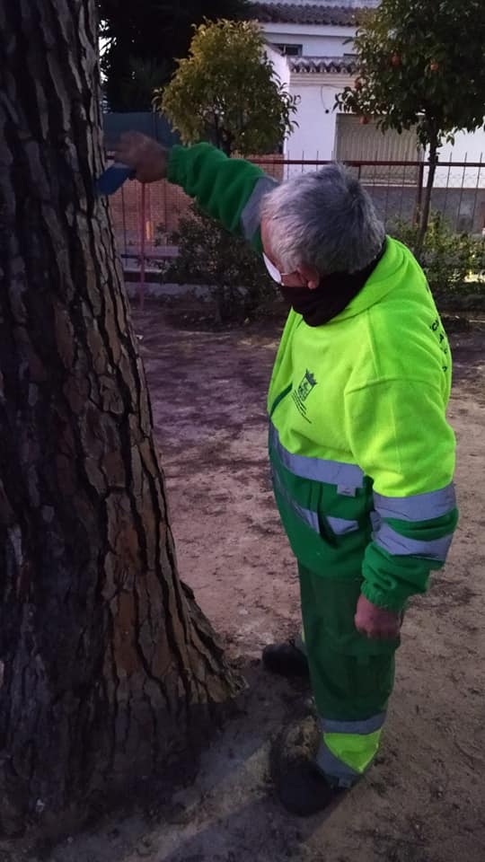 Esta semana se están tratando los diferentes ejemplares de pinos que existen en la localidad en los recintos de suelo público.