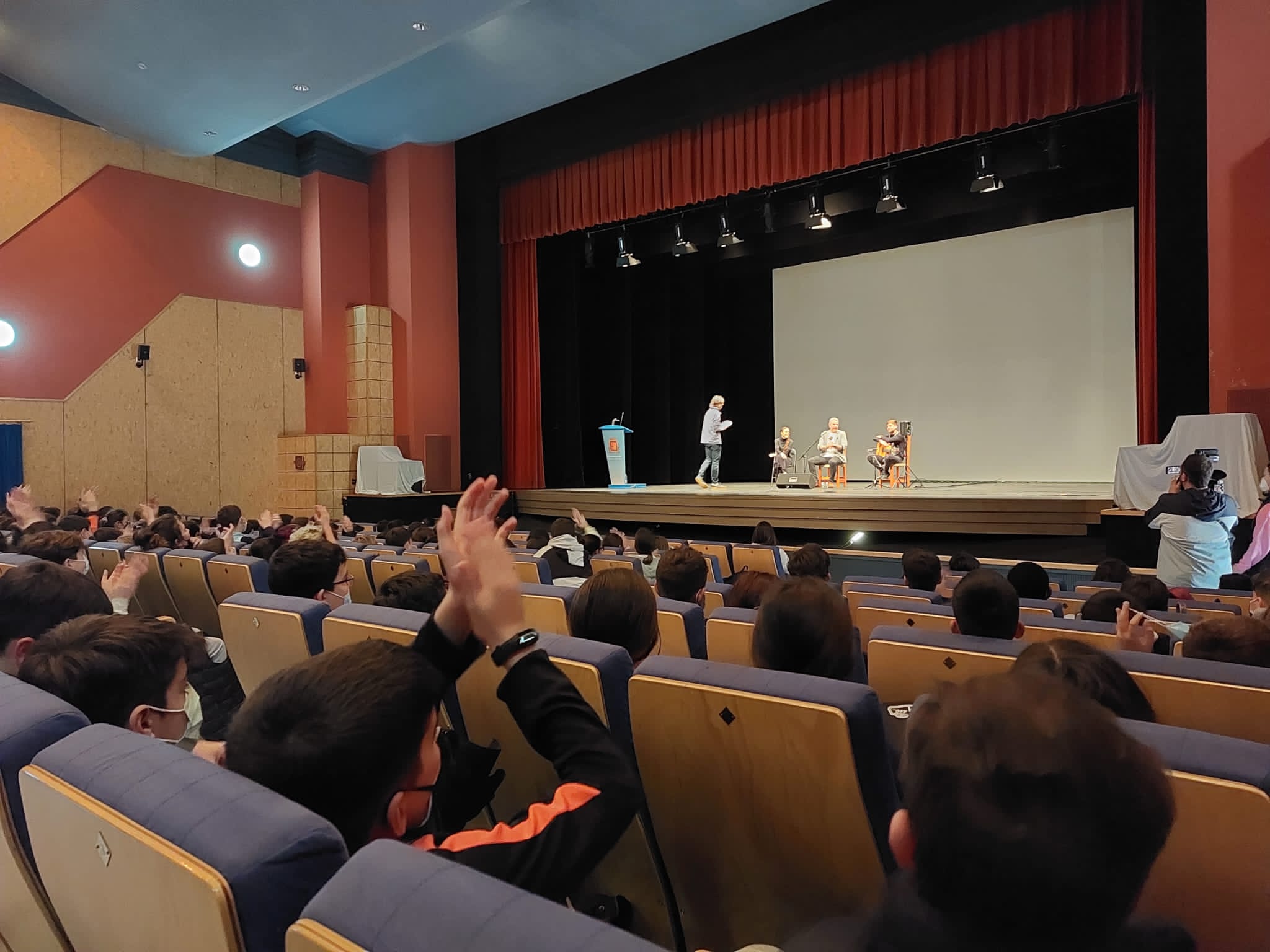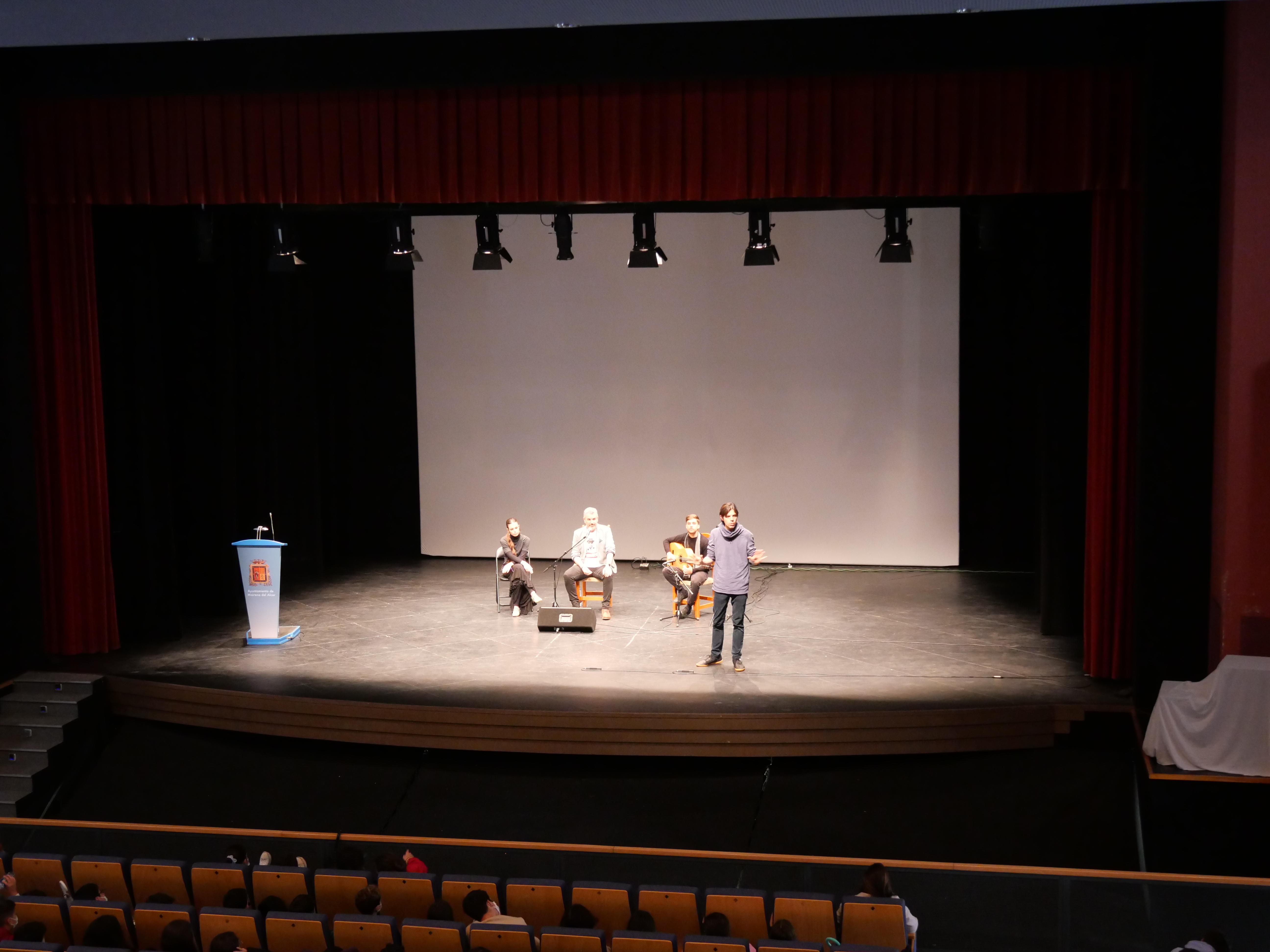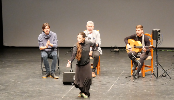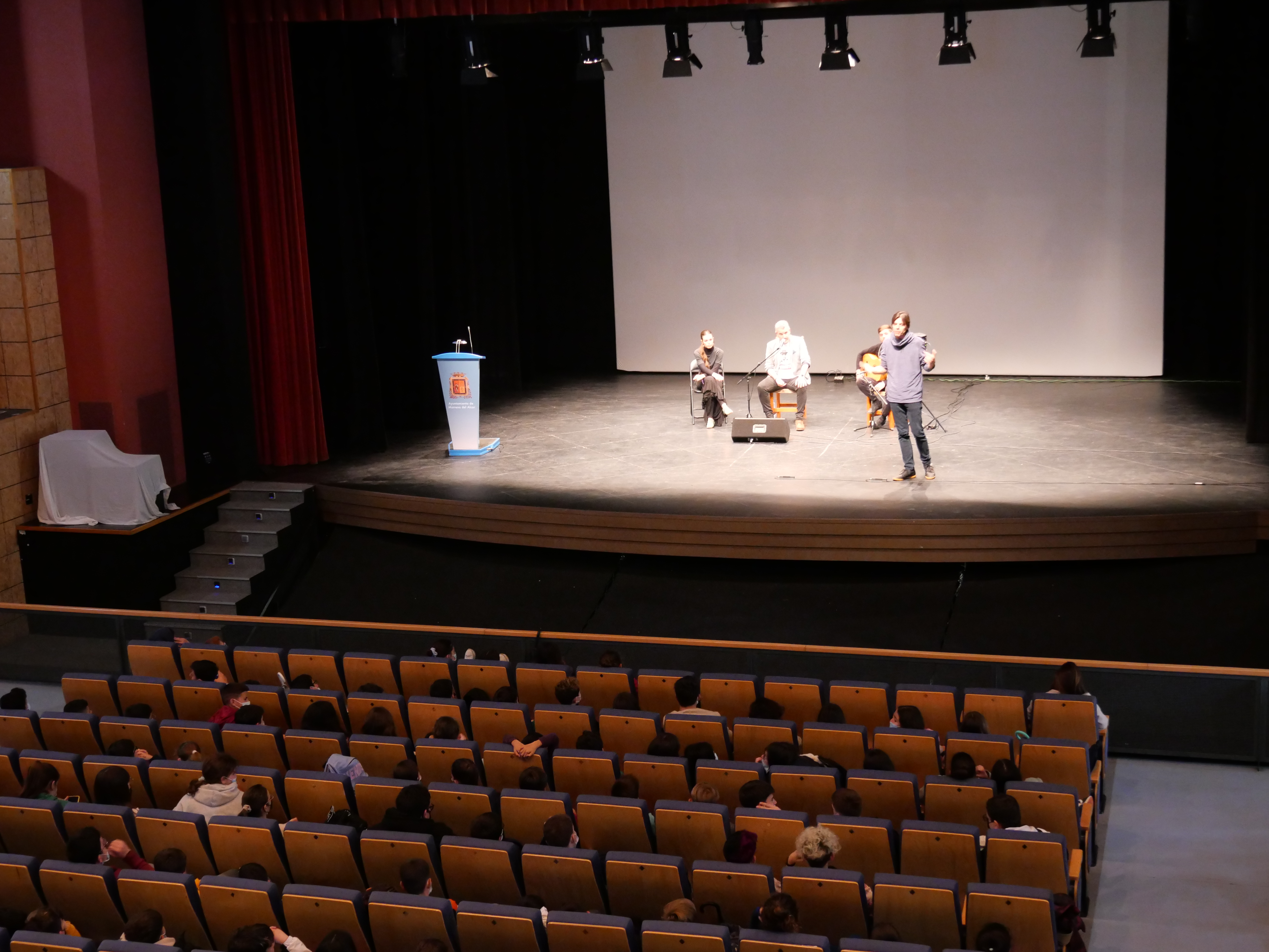 Alumnos de 1º de ESO del IES Los Alcores han asistido esta mañana a una conferencia ilustrada sobre flamenco, impartida por la Fundación Cristina Heeren en el Teatro Municipal Calixto Sánchez. Los jóvenes estudiantes no solo han conocido cantes como la bulería, el fandango o el tando; también han practicado su compás y han disfrutado de una práctica de cante por tangos. Esta actividad forma parte del proyecto de innovación de patrimonio y flamenco ¡Siente Mairena!