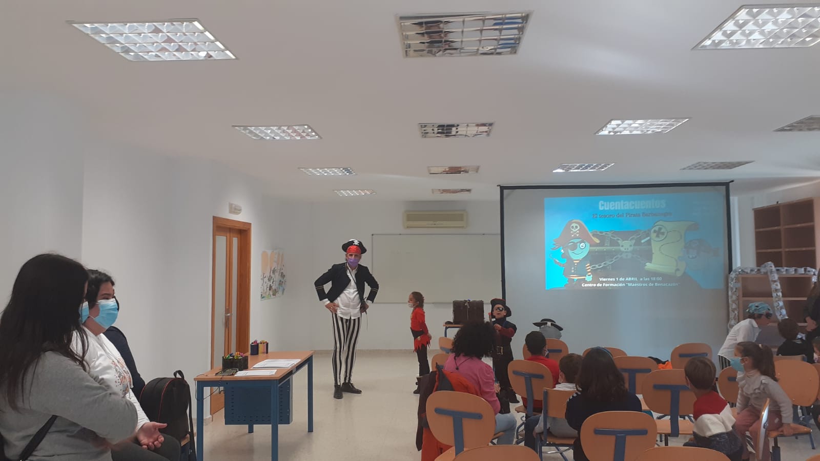 El Ayuntamiento de Benacazón informa sobre una nueva sesión de CUENTACUENTOS 2022 celebrada el pasado Viernes 01 de Abril en el Centro de Formación 'Maestros de Benacazón': "EL TESORO DEL PIRATA BARBANEGRA", contado de manera entusiasta y divertida por LUIS MAROTO y el pequeño RAFA MAROTO.