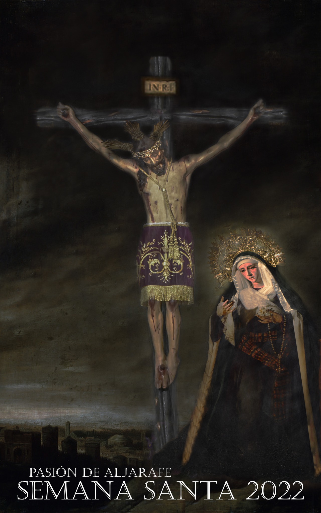 El entorno engloba un ambiente de penumbra, tristeza en el monte Gólgota, de fondo se puede apreciar un pueblo y qué mejor que hacer mención del Aljarafe que, de manera afortunada, le da título a esta red de comunicación".