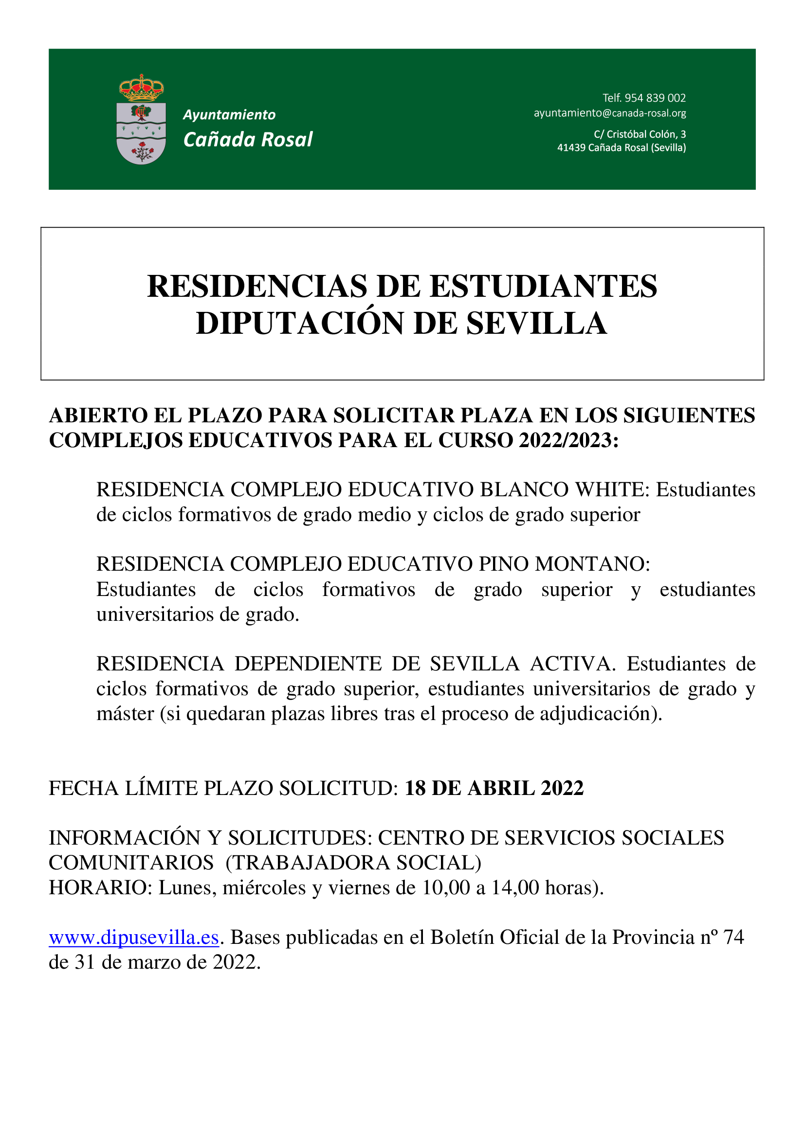 Imagen Ubicación Categoría noticia Educación Mostrar en el carrusel de la sección No Fecha Mar, 05/04/2022 - 10:07 Más información http://www.canadarosal.es/es/actualidad/noticias/RESIDENCIA-DE-ESTUDIANTES-DIPU…
