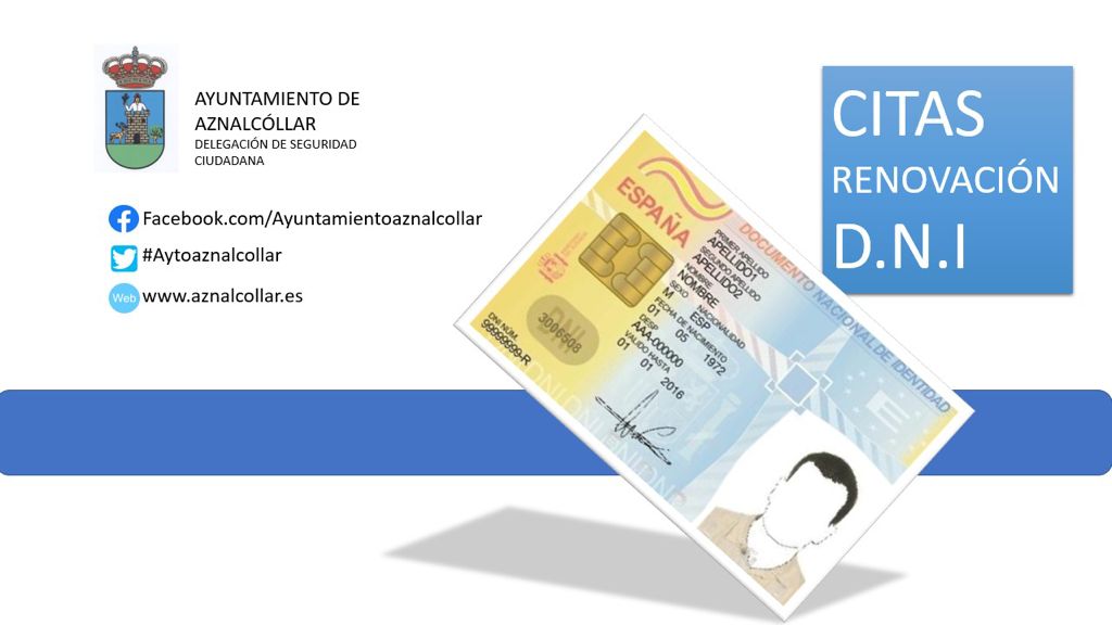 Nuevo horario y teléfono para citas del DNI. De Lunes a Viernes desde las 9h hasta las 13h en el siguiente telefono del Excmo. Ayto de Aznalcollar, 95 413 30 15.