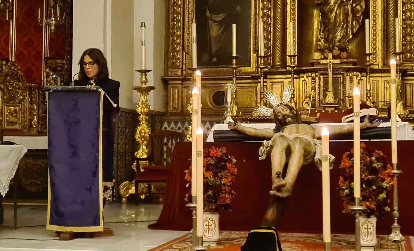 Desde estas líneas queremos felicitar a nuestra compañera Lola Lozano Piedra por la emotiva meditación que esta tarde ha realizado ante la imagen del Stmo. Cristo de la Vera-Cruz.