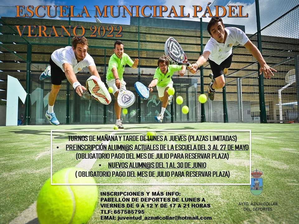 Desde la delegación de deportes del Ayuntamiento de Aznalcóllar empezamos a preparar las diferentes actividades deportivas para este verano, por ello comenzamos con las preinscripciones para la escuela de pádel de verano 2022.