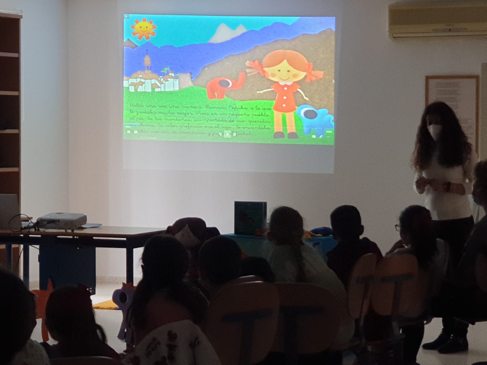 Estela contó a l@s niñ@s esta interesante historia de "Pepuka y el Monstruo que se llevó su sonrisa", que se ha convertido en un cuento de referencia para trabajar desde la infancia la violencia de género, a través del buen trato y la autoestima. Un cuento supervisado por expertas en violencia de género e igualdad: Psicólogas, Pedagogas, Terapeutas y Profesoras de Educación Infantil y Primaria.