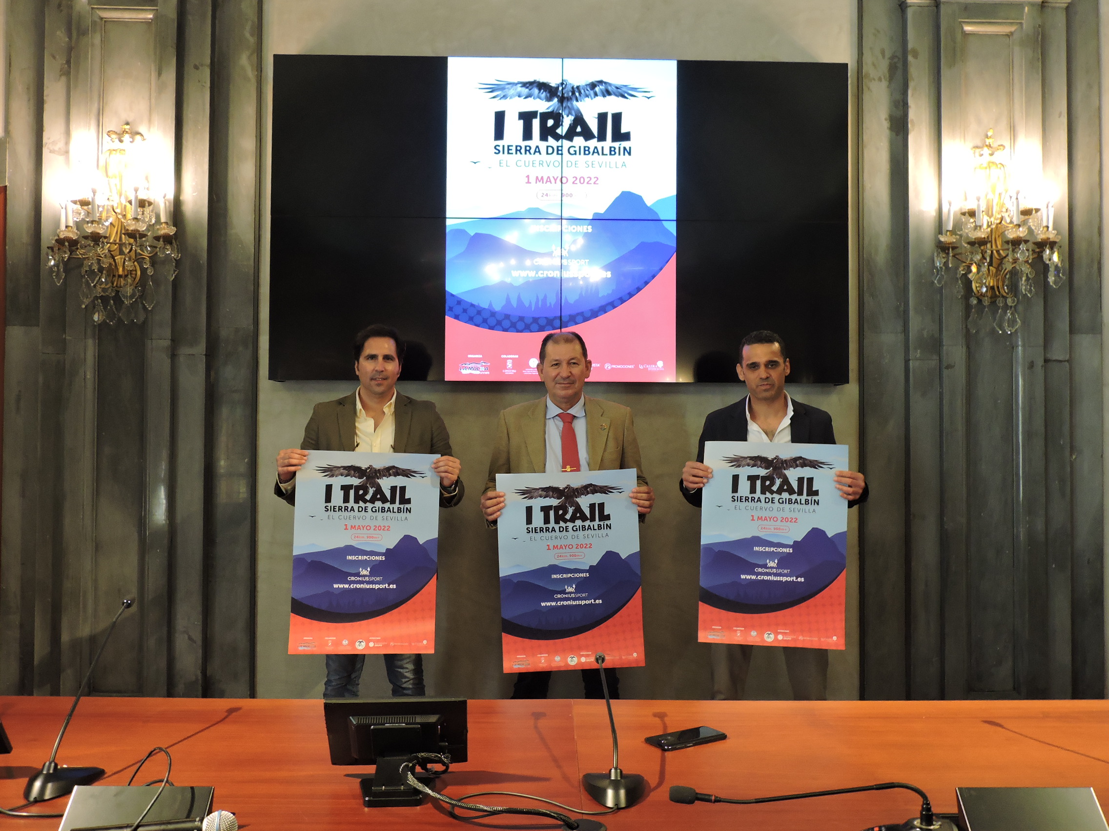 El Alcalde Francisco J. Martínez, junto con el vicepresidente del Club Deportivo LA Mocha Trail Israel Pérez y el delegado de Deportes Alejandro Ruiz han presentado en la Casa de la Provincia en Sevilla el I Trail Sierra de Gibalbín que se desarrollará este domingo 1 de mayo.