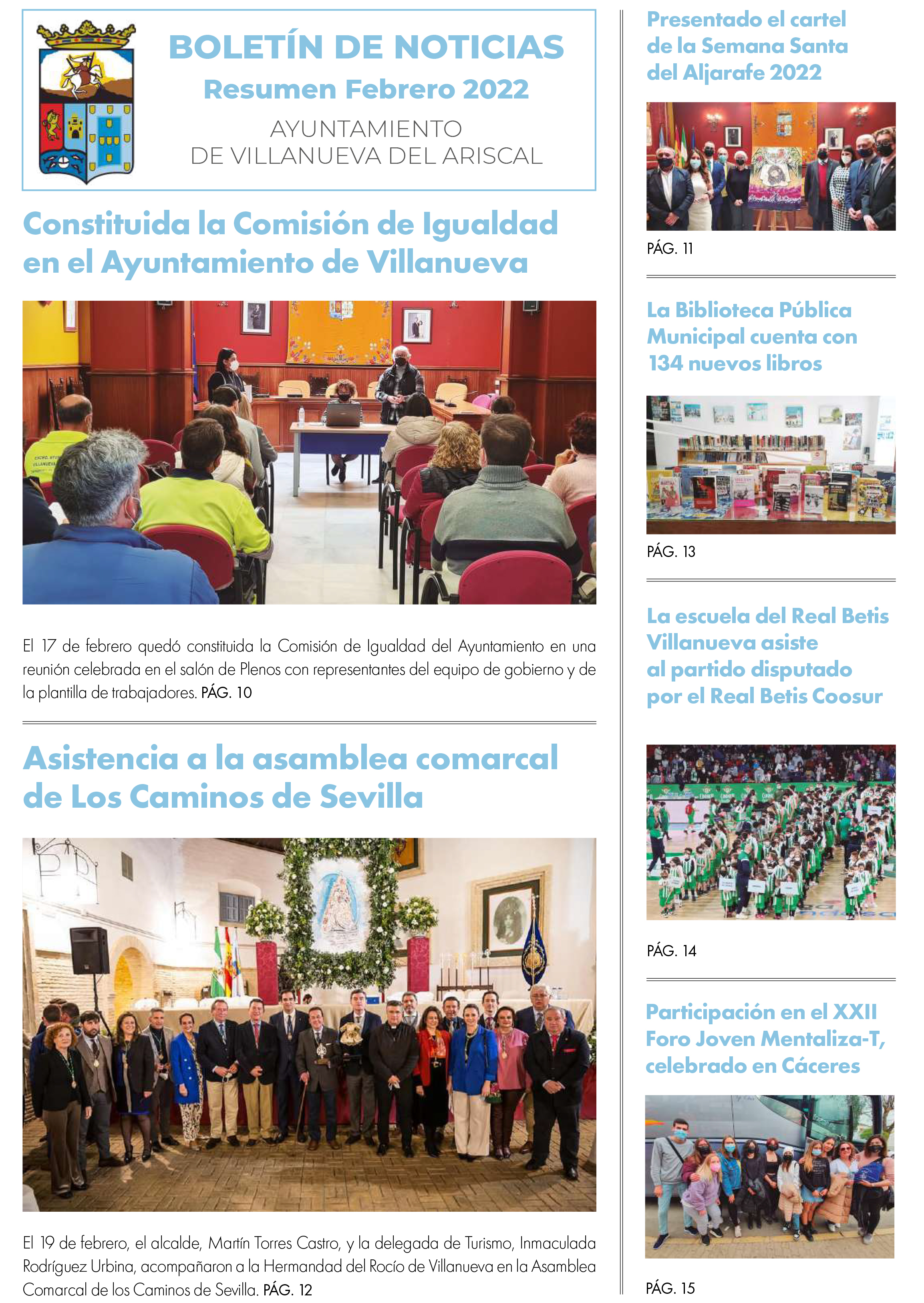 Aquí os dejamos este boletín informativo correspondiente a febrero de 2022. Seguimos trabajanado con ilusión en nuevos proyectos y para hacer de #VillanuevaDelAriscal #ElPuebloQueTúMereces