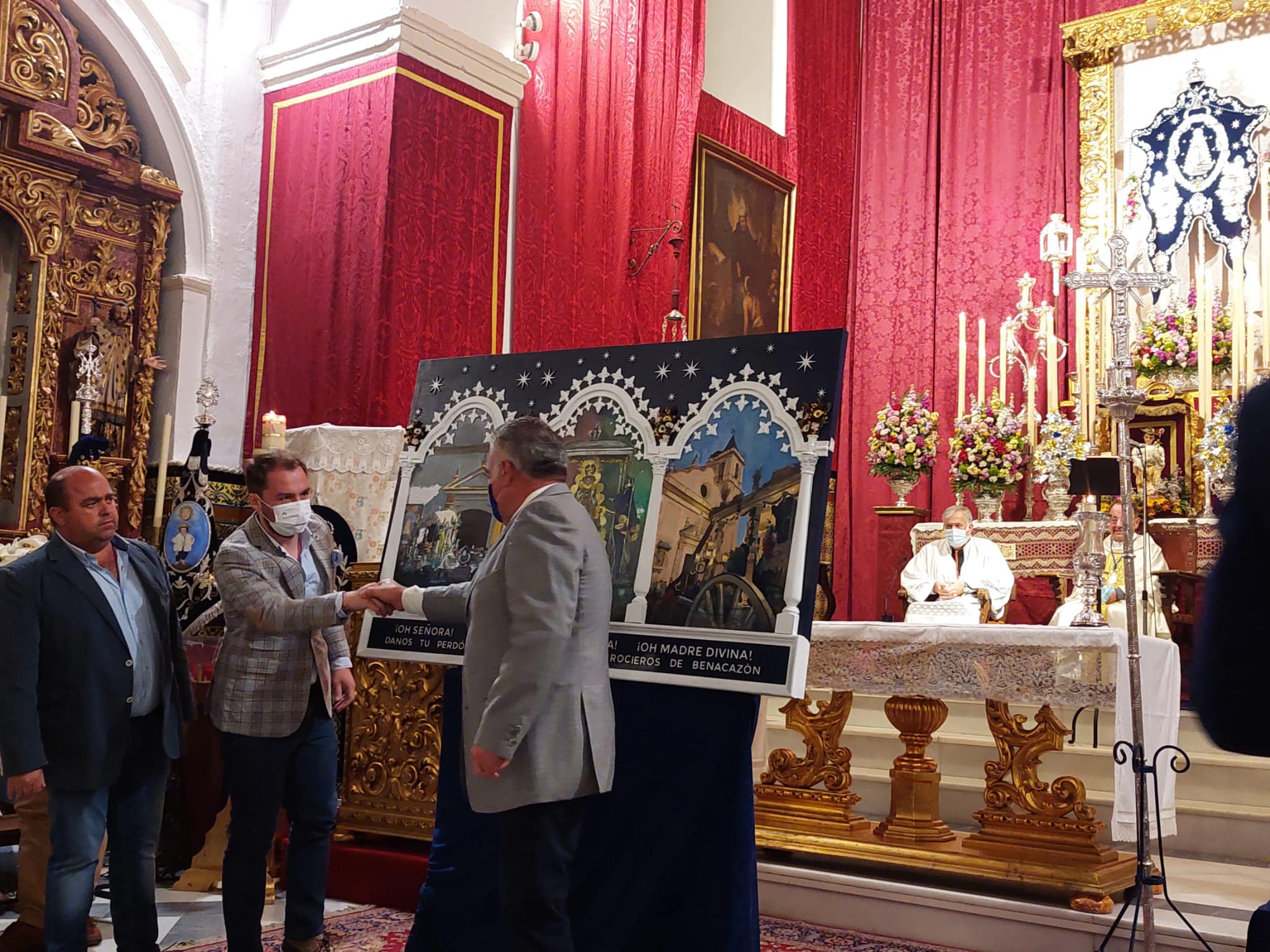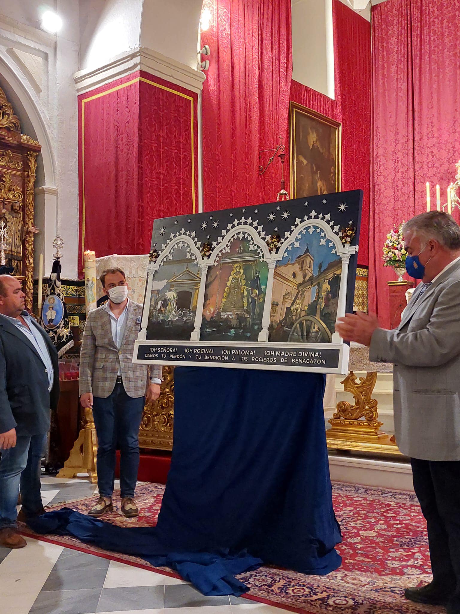 El Ayuntamiento de Benacazón informa que el pasado martes 3 de Mayo, tras finalizar el primer día de Triduo en honor a la Santísima Virgen del Rocío, tuvo lugar en la Iglesia Parroquial la Presentación del Cartel de la Romería del Rocío de Benacazón 2022, una obra del reconocido artista local Rafael Laureano que representa tres momentos muy significativos para la Hermandad y rocieros de Benacazón.